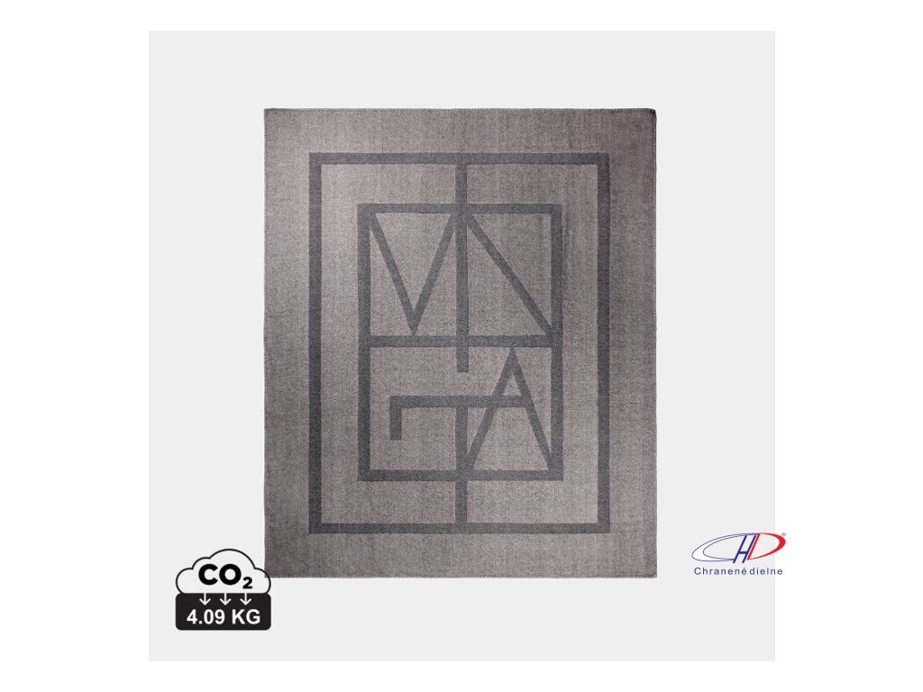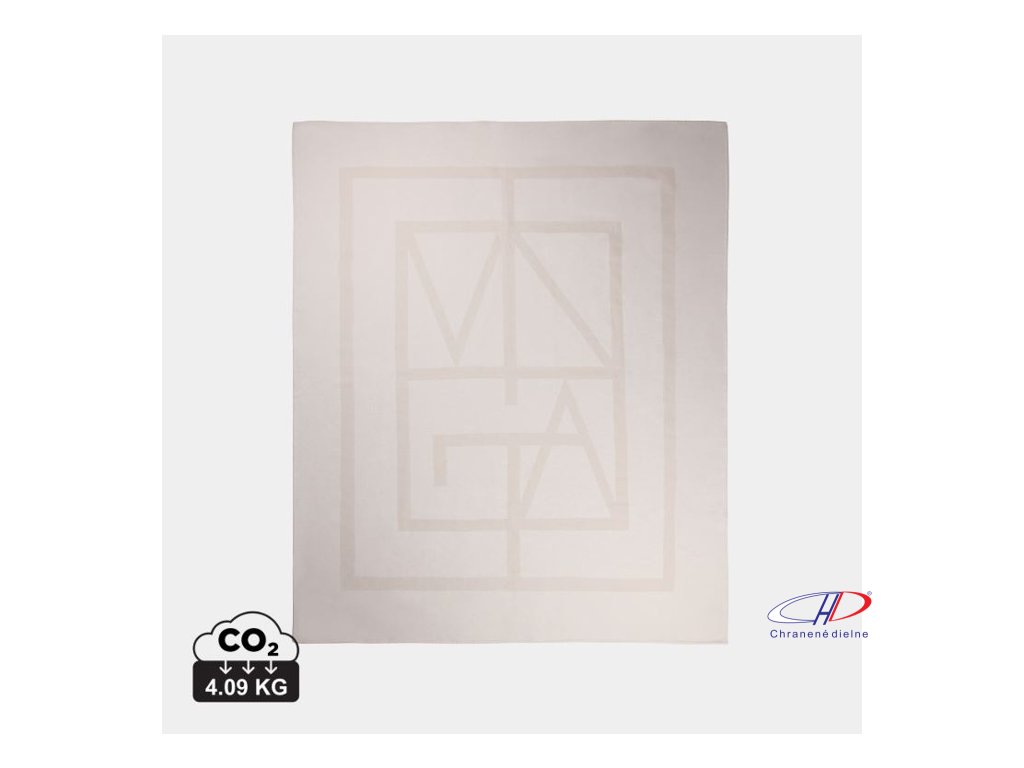Obojstranný dizajn s kontrastnými tónmi a decentným prevráteným vzorom monogramu. Veľkosť: 170x130 cm. 260 g/m2. Možno prať v práčke pre jednoduchú údržbu. Tento produkt obsahuje 97 % GRS-certifikovaného recyklovaného polyesteru.Dodatočné parametre