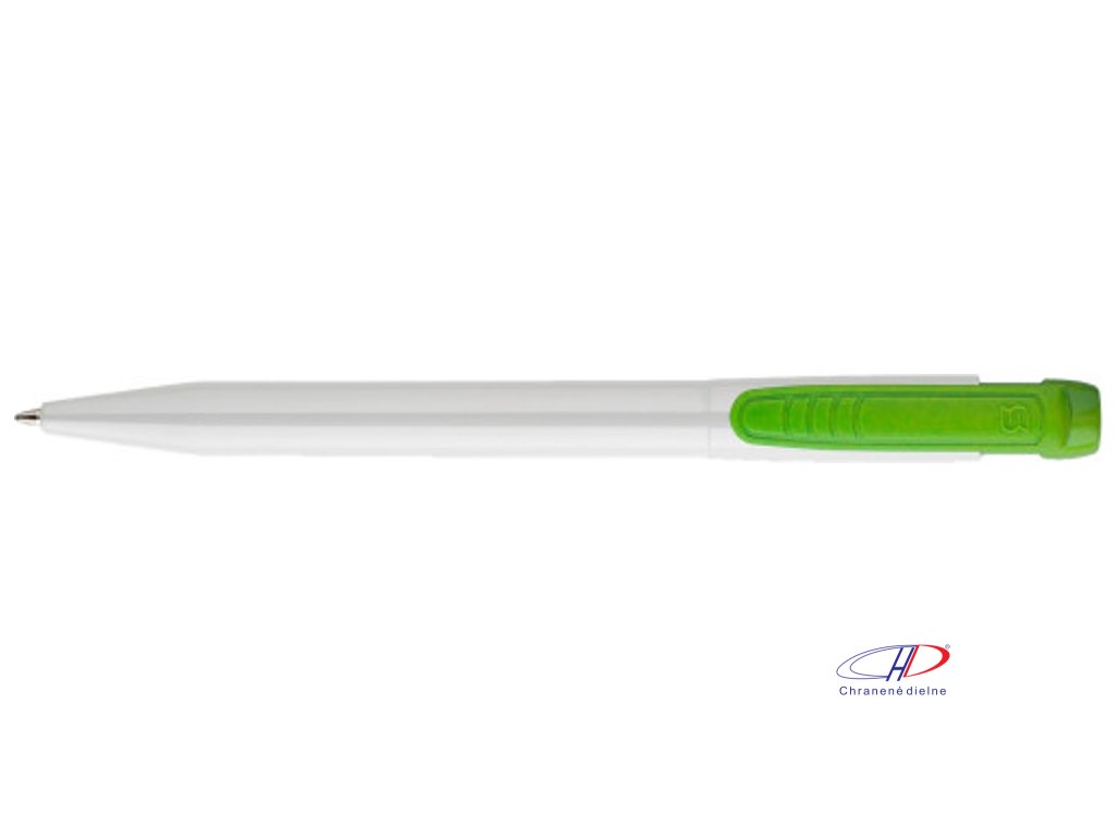 Stilolinea guľôčkové pero s bielym barelom a farebným klipom. Modrá jumbo náplň nemeckej kvality.