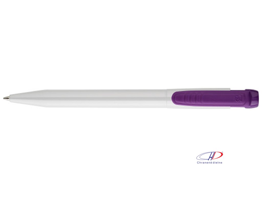 Stilolinea guľôčkové pero s bielym barelom a farebným klipom. Modrá jumbo náplň nemeckej kvality.