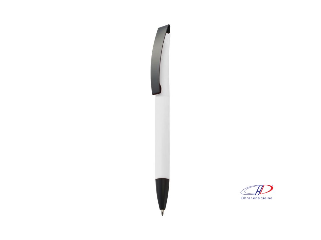 Plastové guľôčkové pero s modrou náplňou a pogumovaným povrchom.