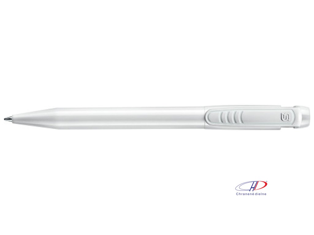 Stilolinea guľôčkové pero s bielym barelom a farebným klipom. Modrá jumbo náplň nemeckej kvality.