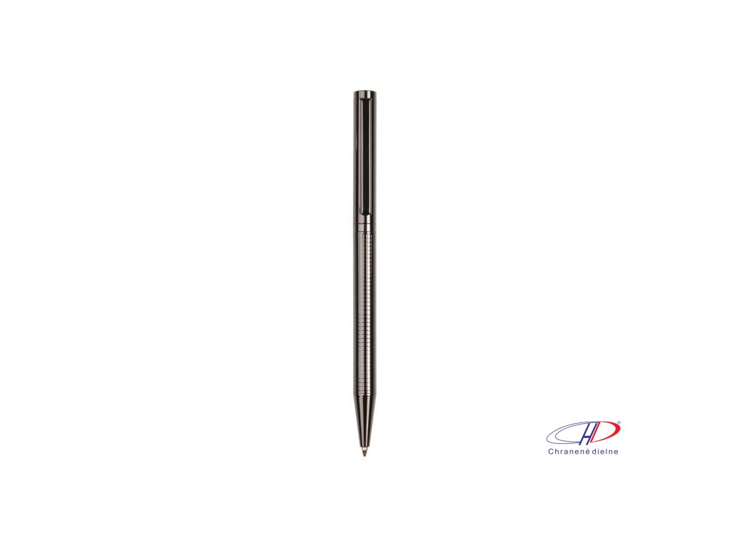 Elegantné a hladké kovové guľôčkové pero s rotačným mechanizmom. Telo pera je zdobené šachovnicovou gravírovanou rytinou. Obsahuje kvalitnú modrú náplň s 1 mm hrotom a jednu čiernu náhradnú náplň. Balené v darčekovej krabičke s certifikátom pravosti.Dodatočné parametre