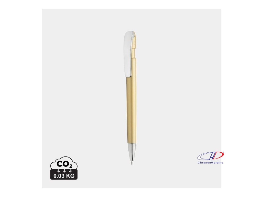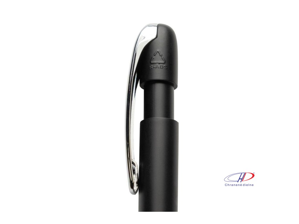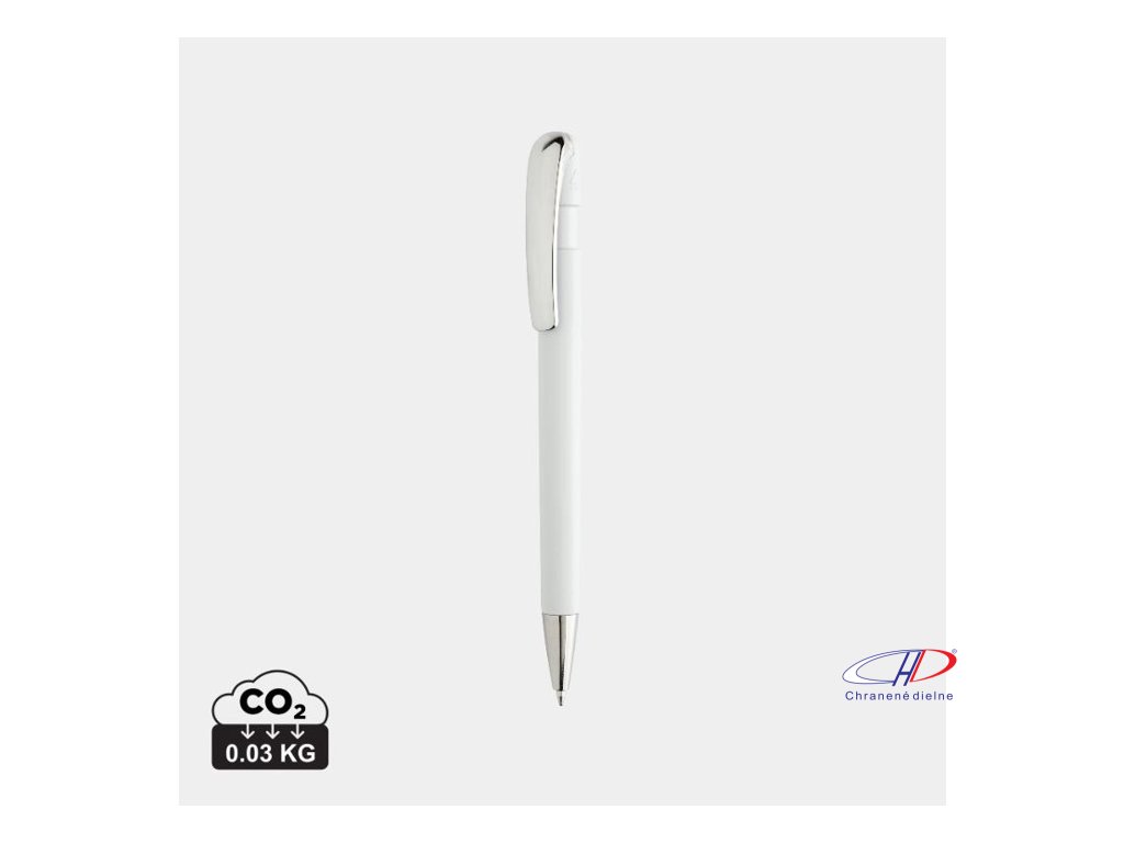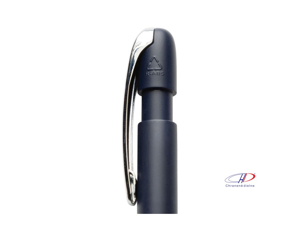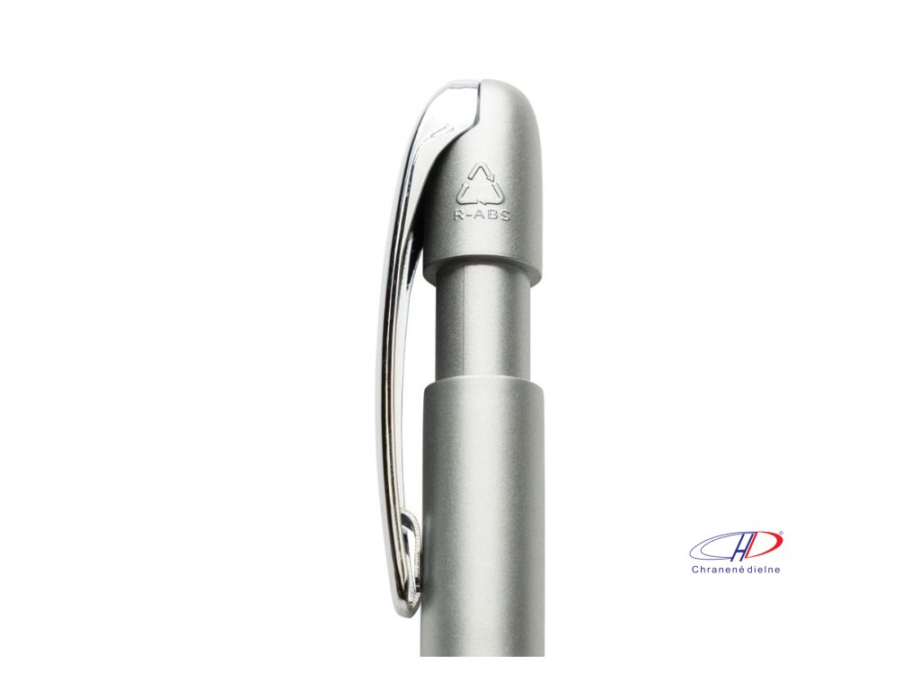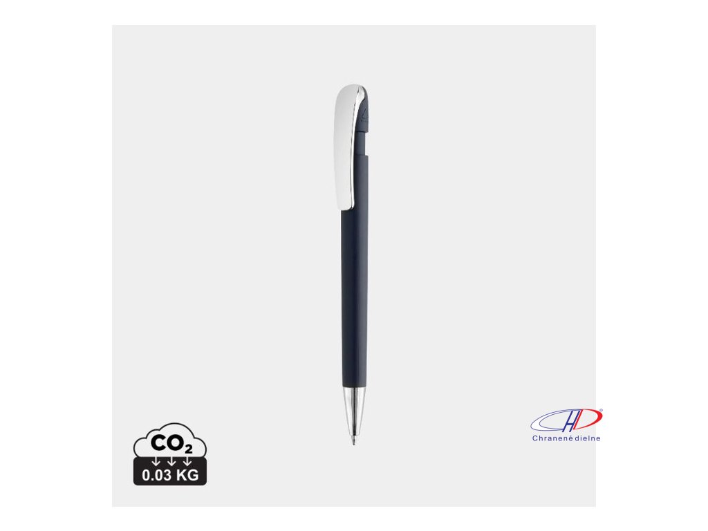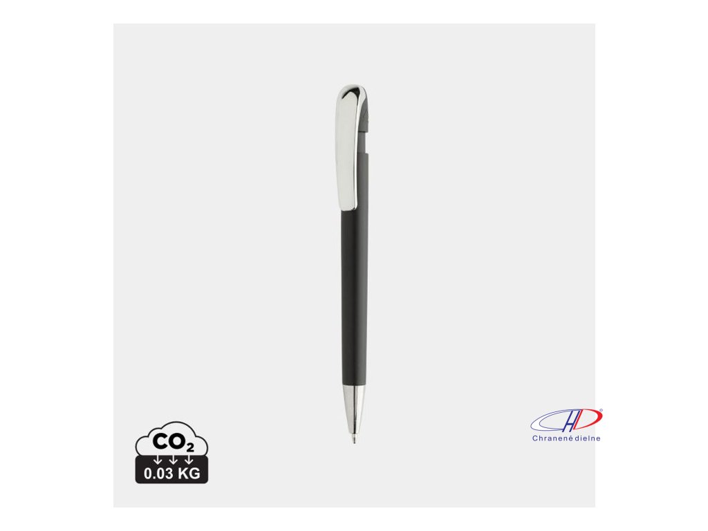 Gulôčkové pero v chromovom prevedení. Pero obsahuje približne 1200 metrov dĺžky písania a je vybavené nemenckým atramentom Dokumental® v modrej farbe s TC guľôčkou pre ultra hladké písanie.Vyrobené z 55 % recyklovaného ABS plastu s certifikáciou RCS.Dodatočné parametre