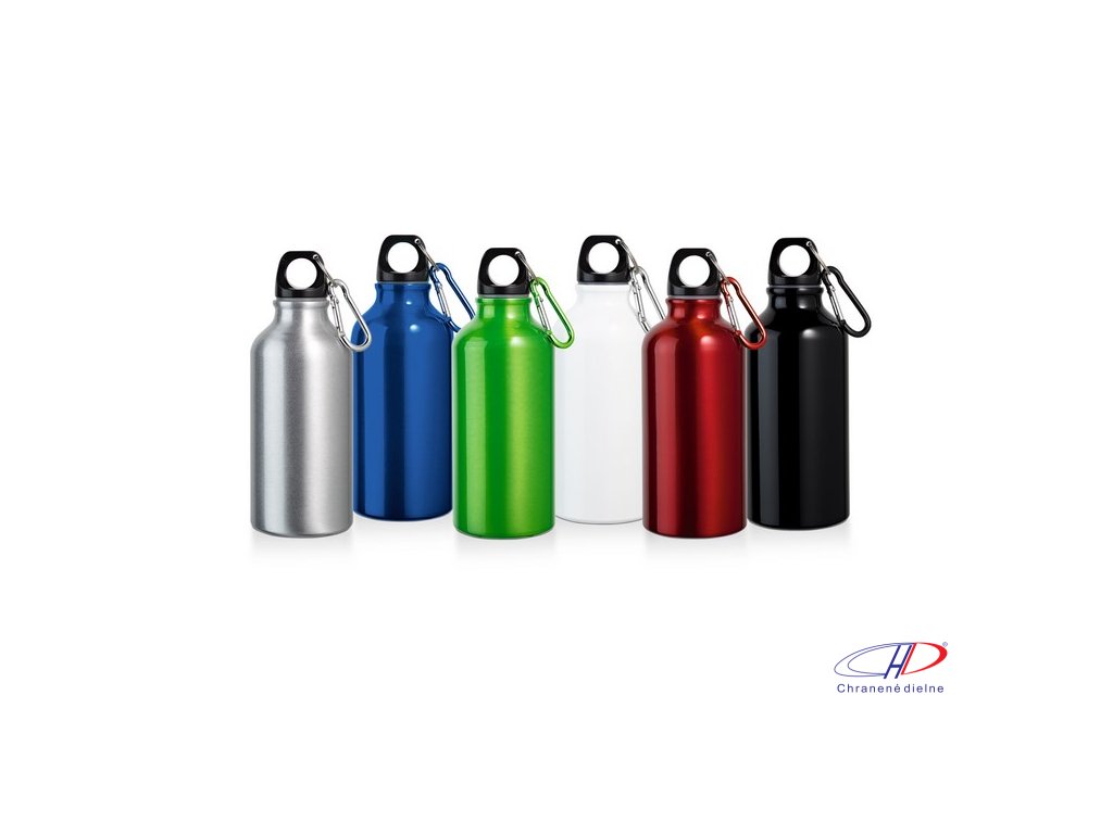 Hliníková športová fľaša s karabínou a objemom 400 ml.