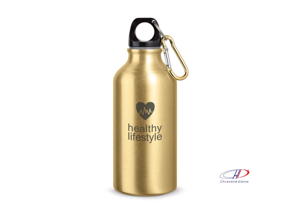 Hliníková športová fľaša s karabínou a objemom 400 ml.
