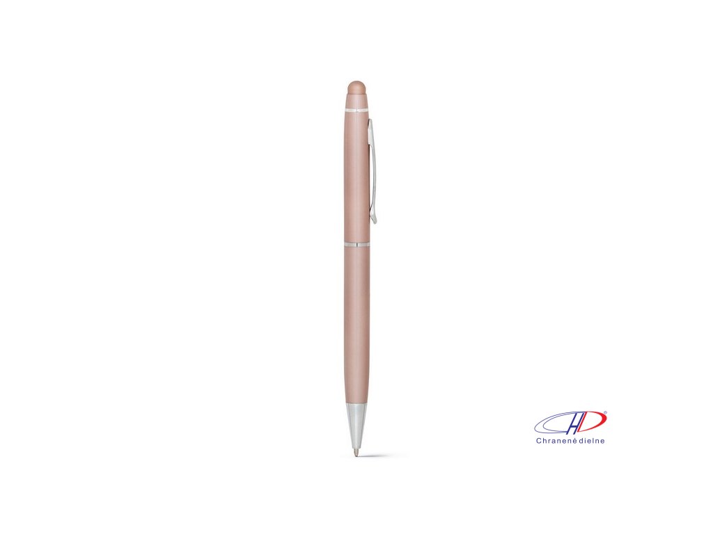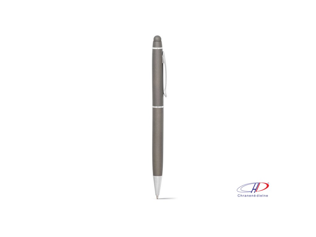 Kovové guľôčkové pero s dotykovou špičkou. Dodávané v darčekovej krabičke (v rozloženom stave).