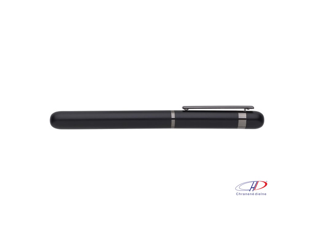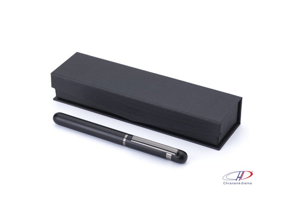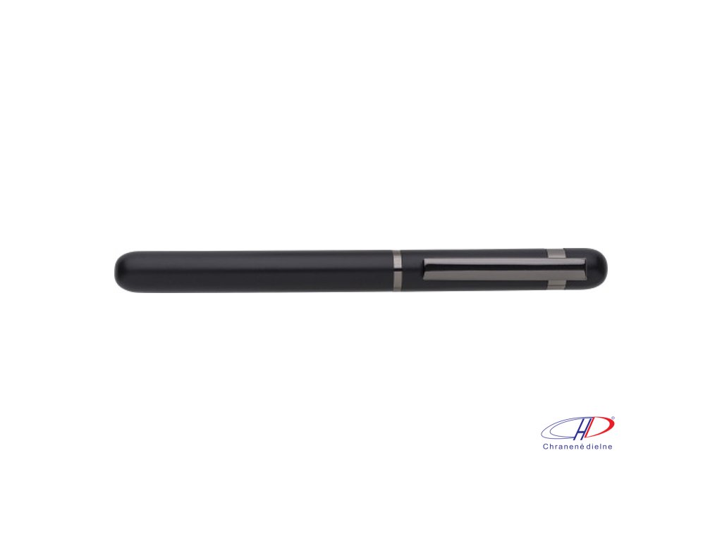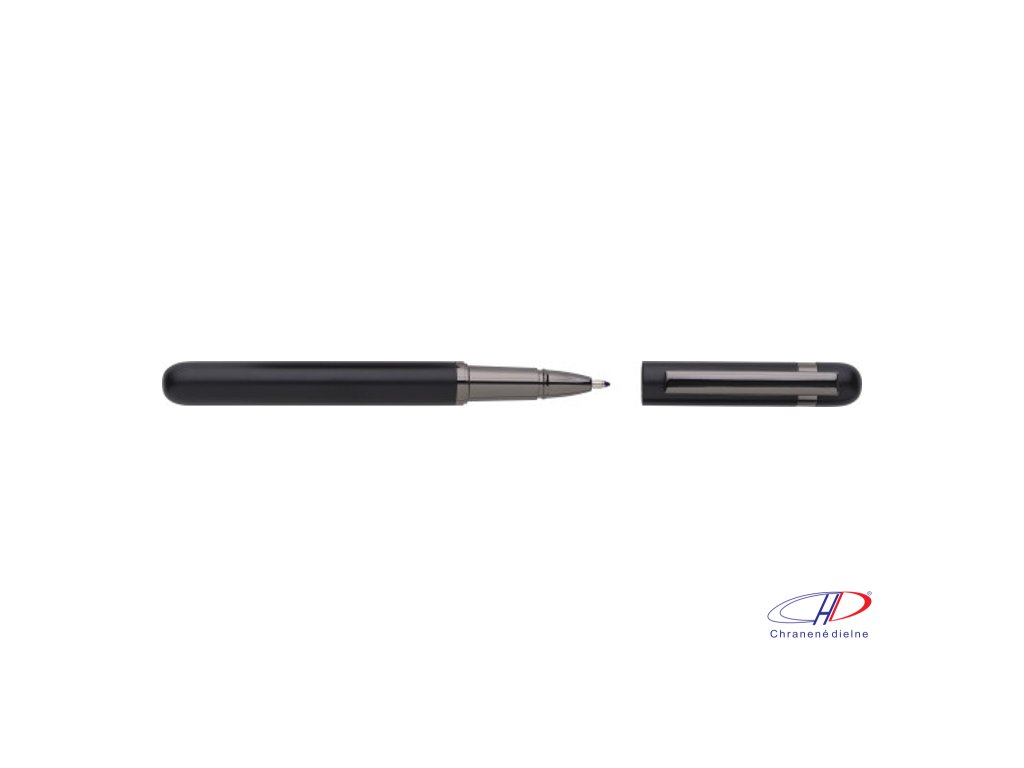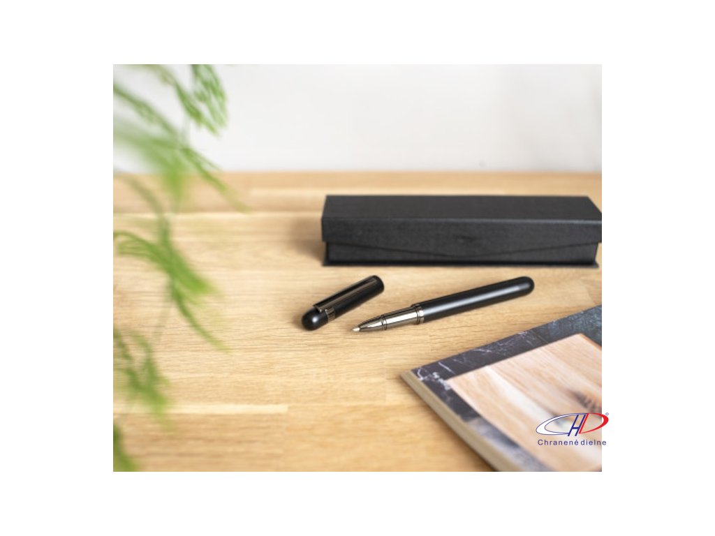 Roller z hliníka a mosadze. S lesklými detailmi na klipe, krúžku a tlačidle. Modrý atrament. Jednotlivo balené v magnetickej darčekovej krabičke s papierovým obalom.Dodatočné parametre