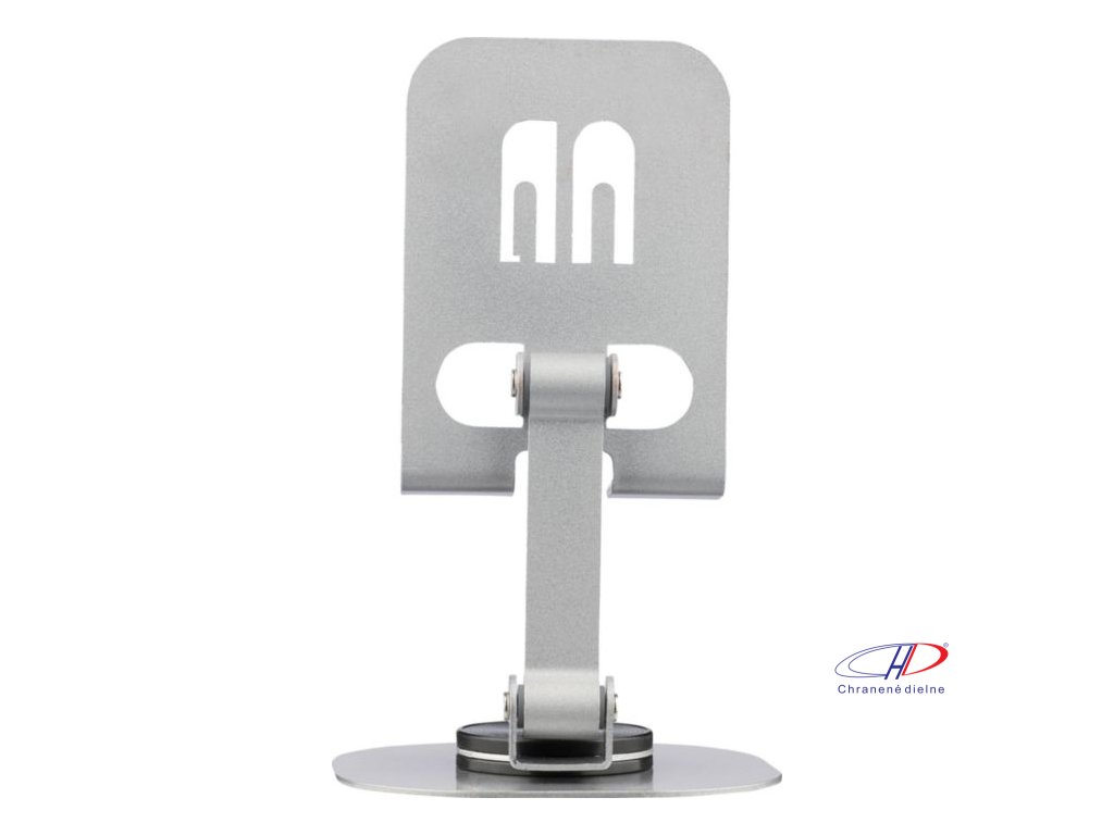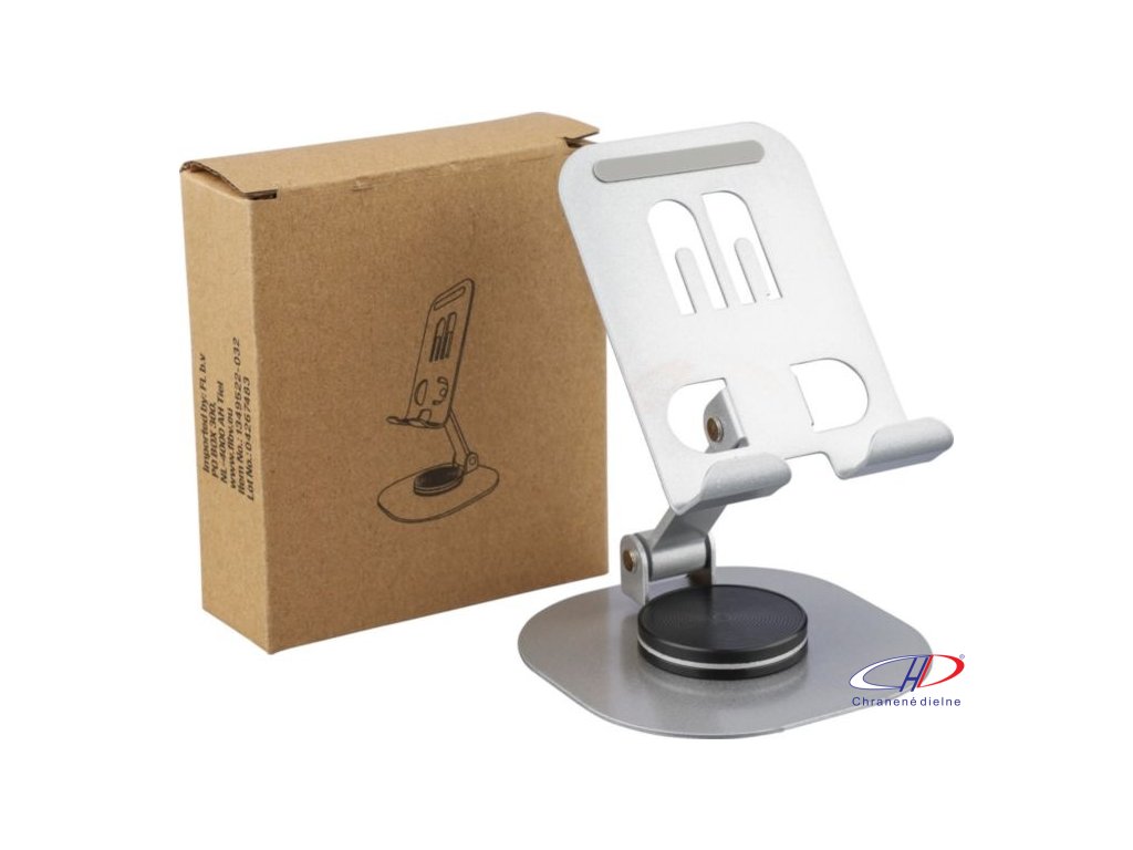 Stojan na telefón z hliníkovej zliatiny s funkciou otáčania o 360 stupňov. Dá sa úplne zložiť pre jednoduché skladovanie. Robustný a ťažký dizajn pre stabilnú oporu. Jednotlivo balené v bielej krabici.Dodatočné parametre