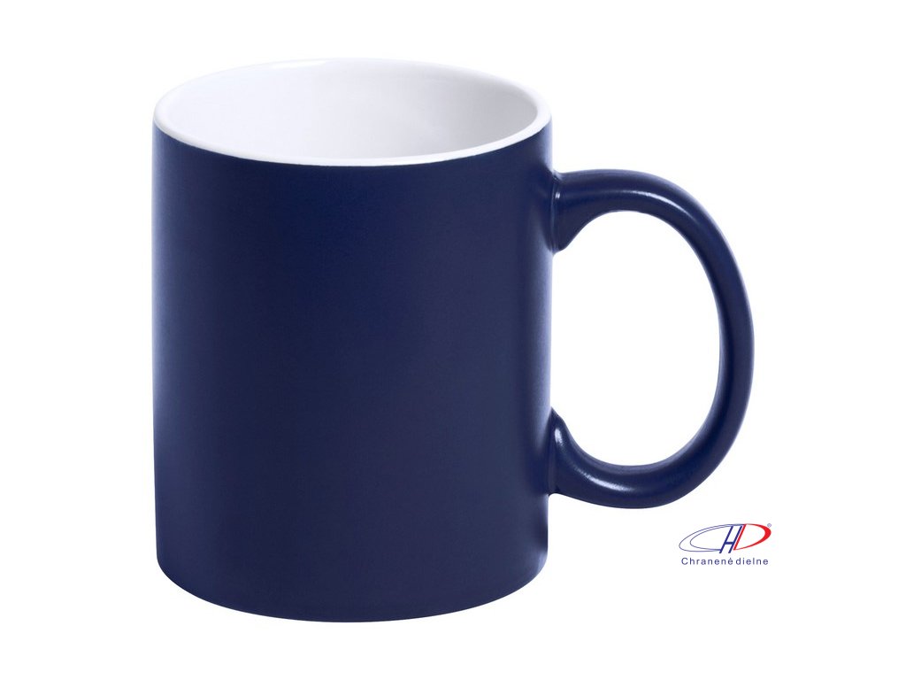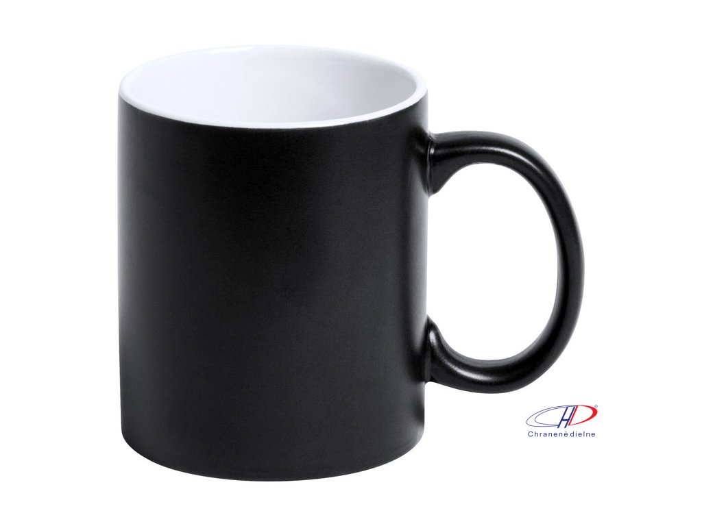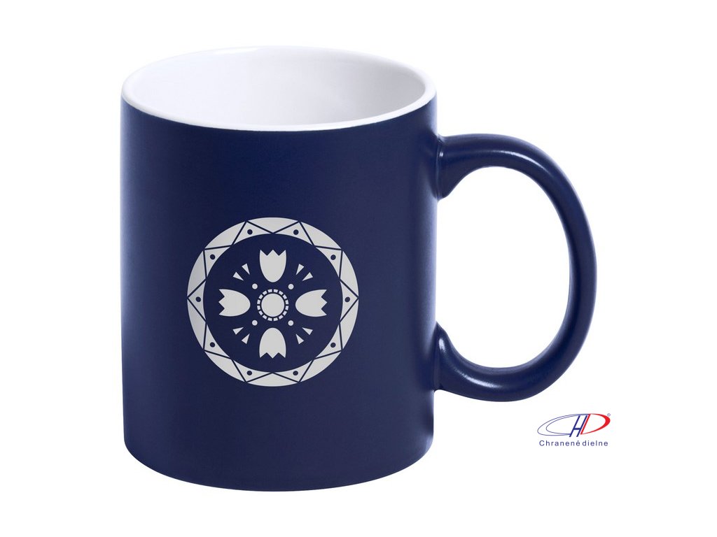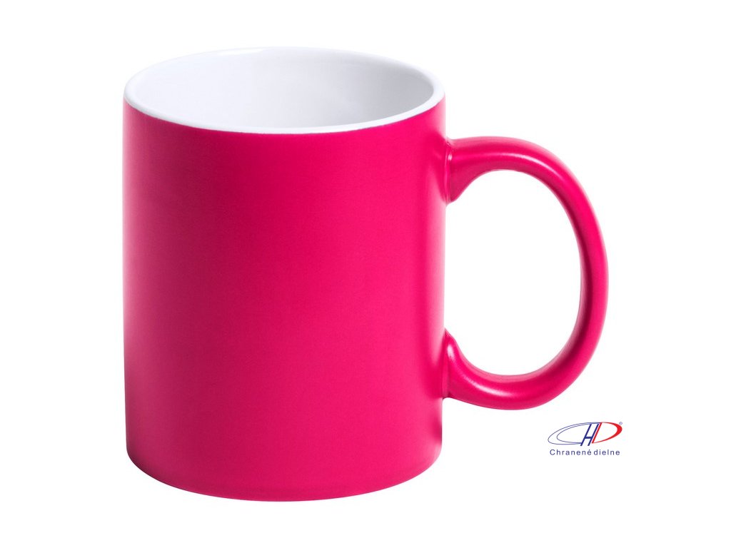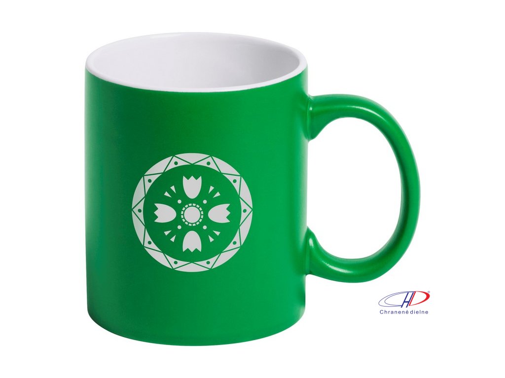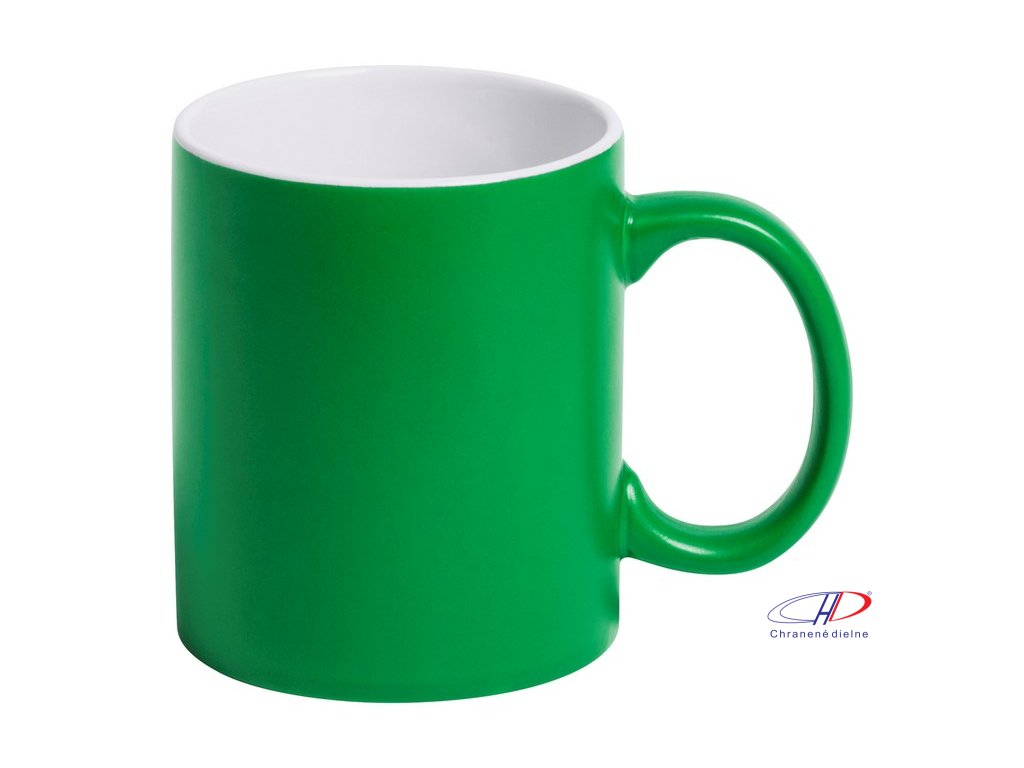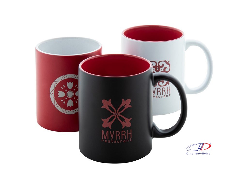 Farebný keramický hrnček s bielym vnútrom, 350 ml. Špeciálny povrch pre laser, kedy vygravírované logo má rovnakú farbu ako vnútro hrnčeka. V darčekovej krabičke.