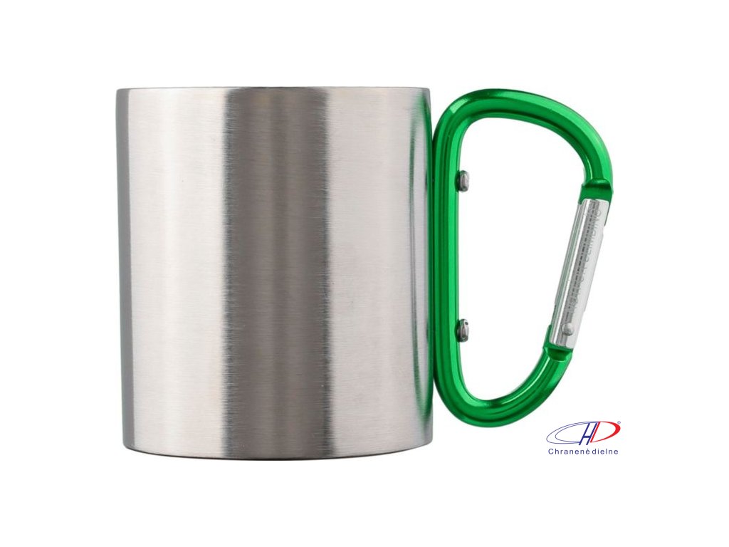 Cestovný hrnček s dvojitou stenou z nehrdzavejúcej ocele (180 ml). Rukoväť súži ako karabína.Dodatočné parametre