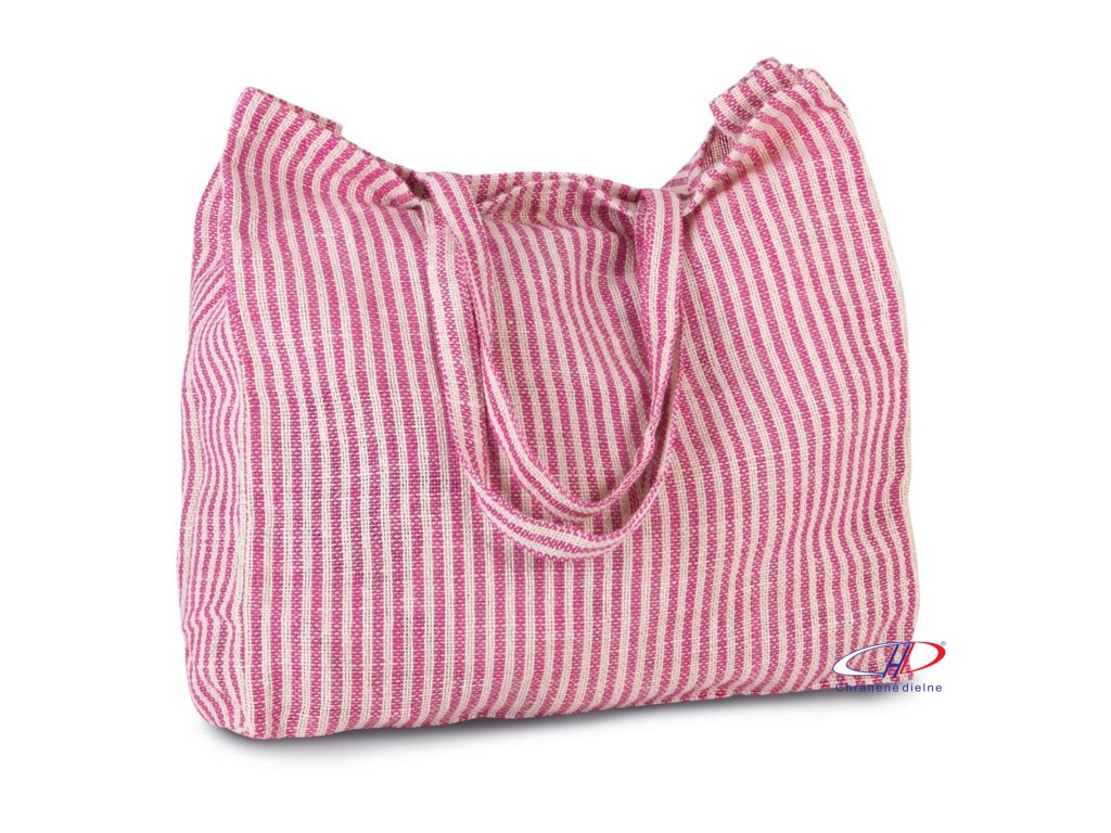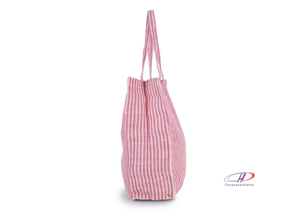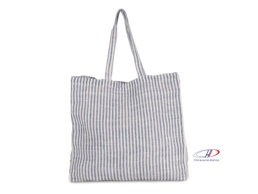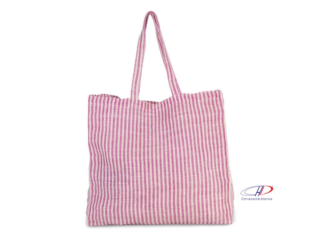 Štvorcová nákupná taška s farbenými tkanými pruhmi z juty a bavlny (juco). Vnútorné bavlnené vrecko na zips. 55 cm dlhé uší z rovnakej tkaninyDodatočné parametre