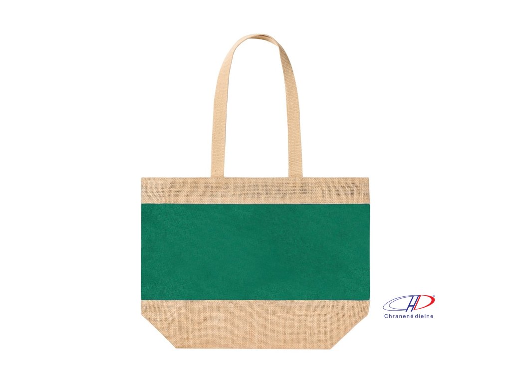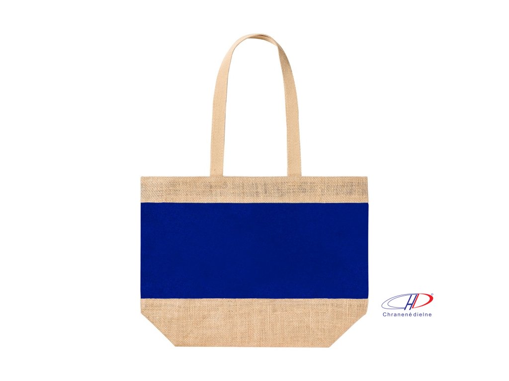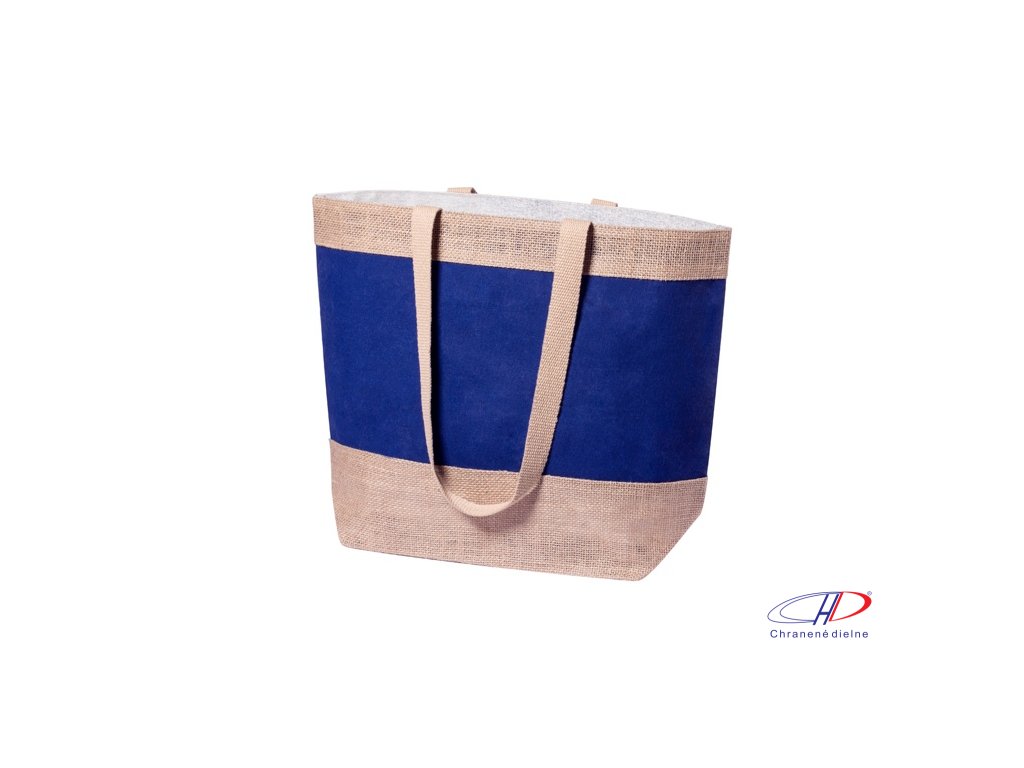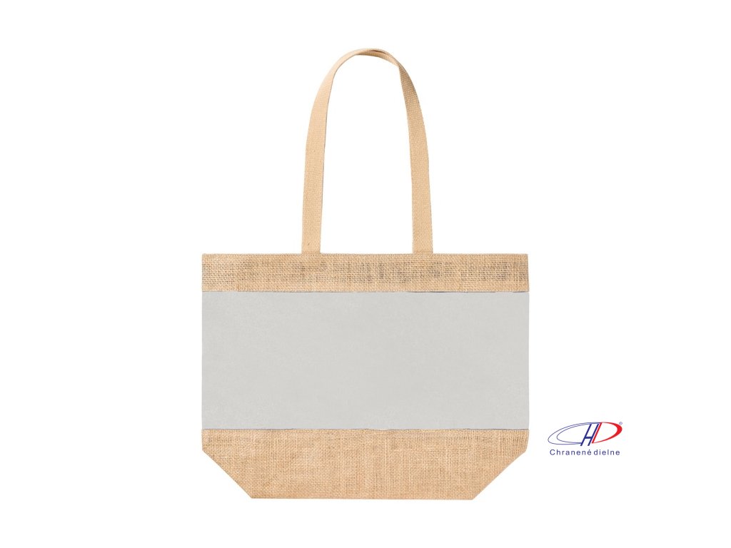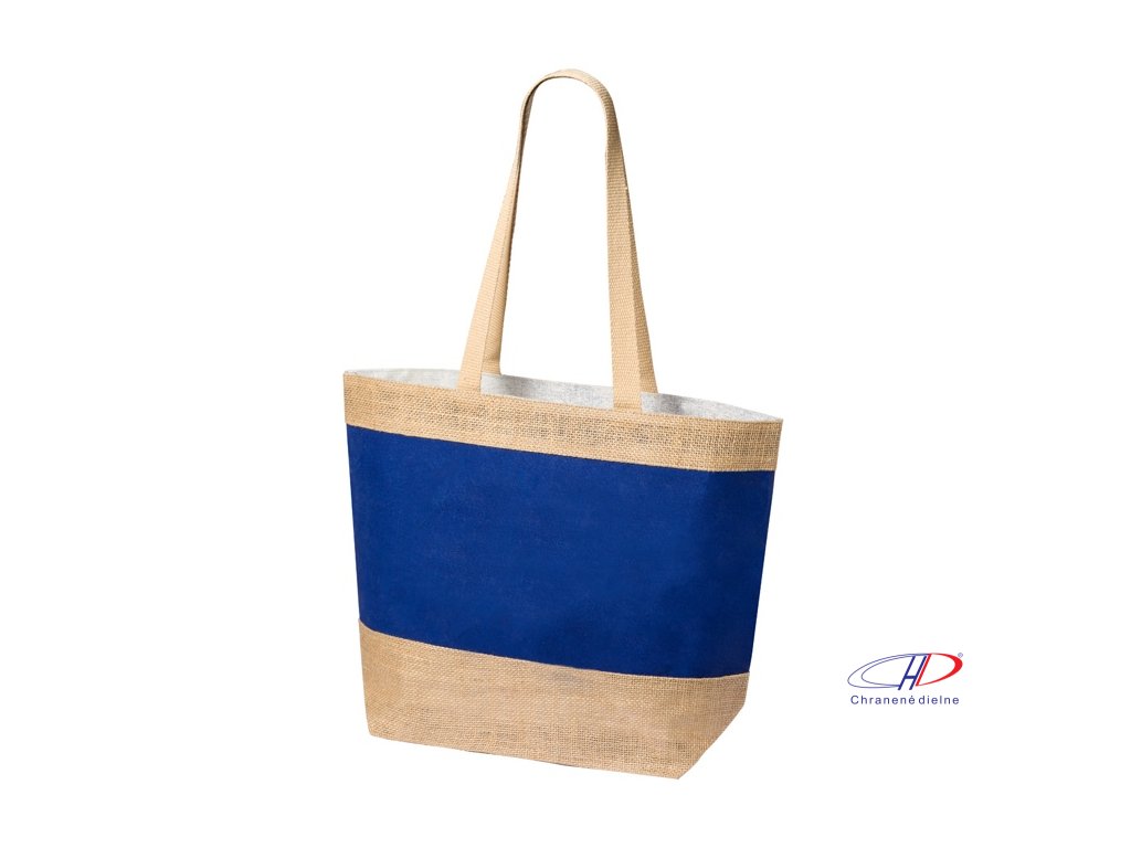 Farebná plážová taška v kombinácii laminovanej juty a laminovanej bavlny s dlhými rúčkami.Dodatočné parametre