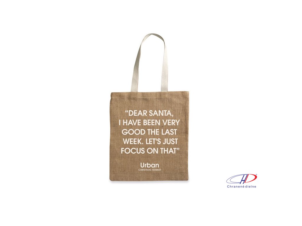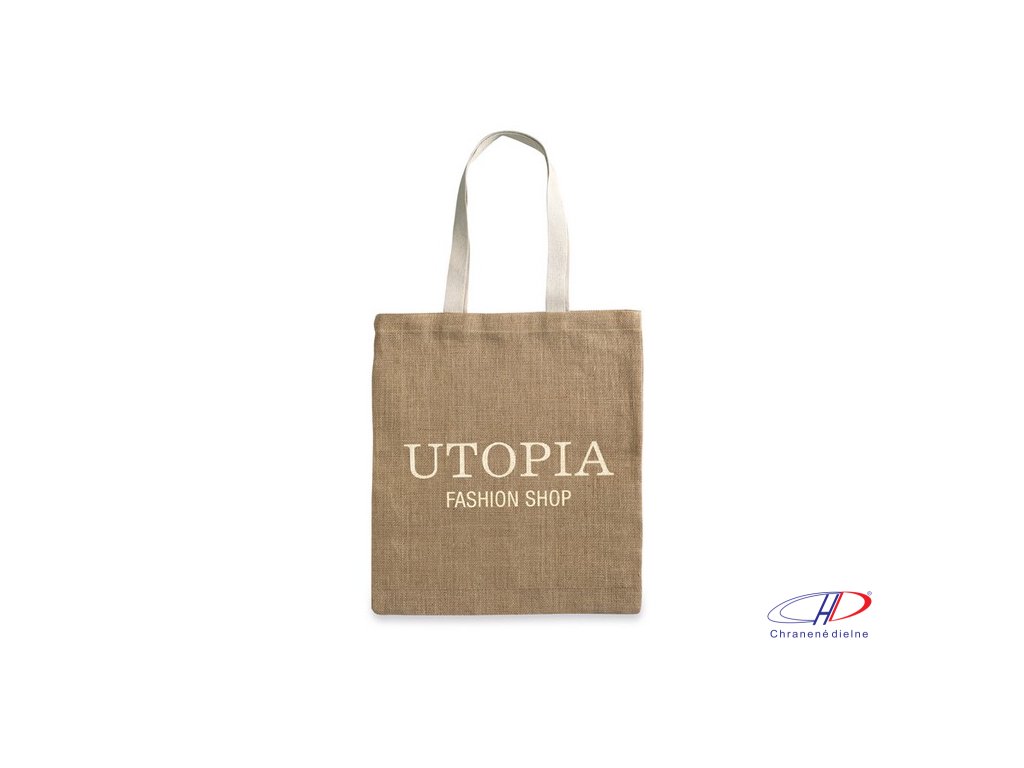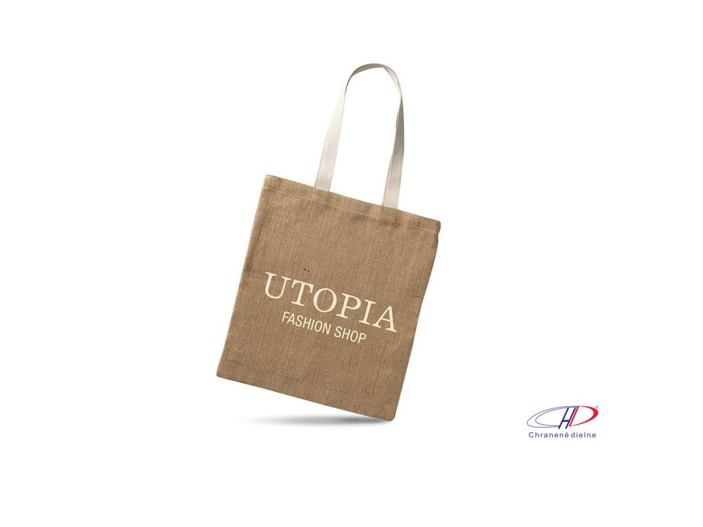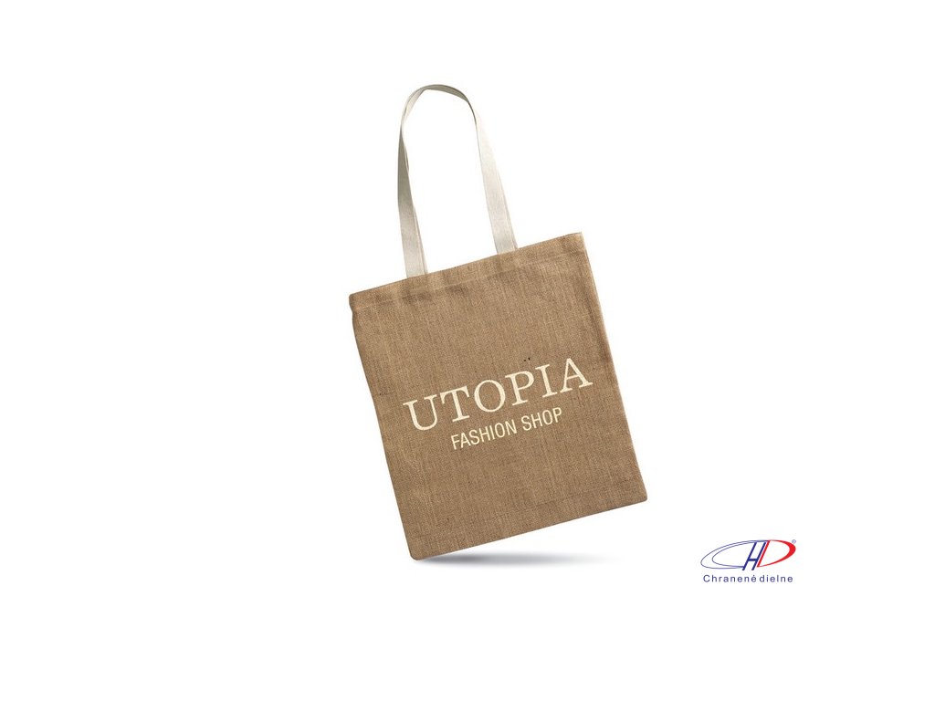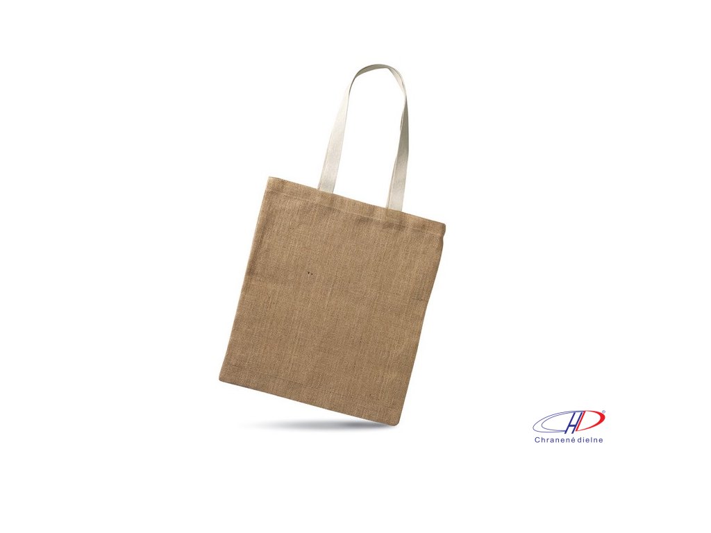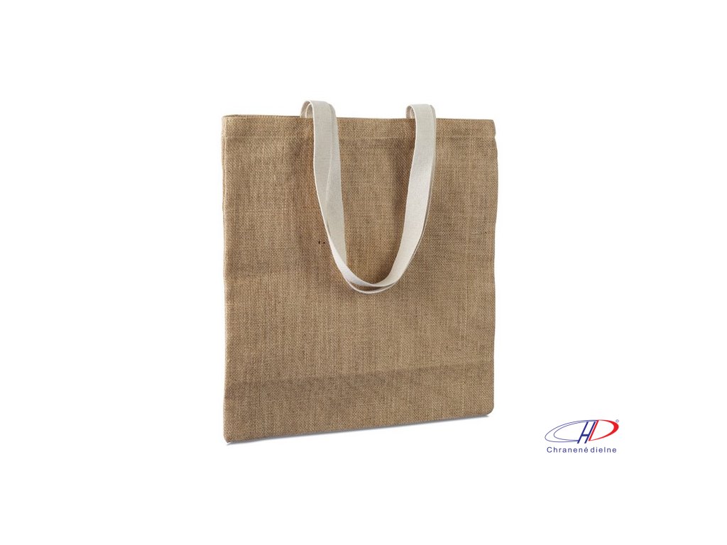 Ekologicky šetrná nákupná taška z juty s bavlnenými ušami.
