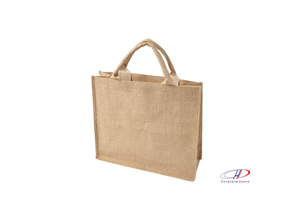 Nákupná taška z juty s laminovaným interiérom. 42,5 x 34,5 cm.