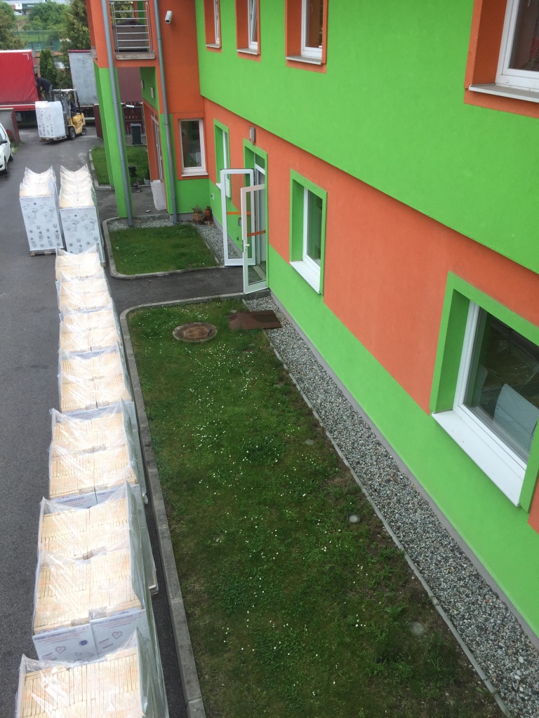 Kamión na odvoz bol objednaný na utorok. Predpoveď na tento deň bola všelijaká len nie priaznivá. Aj napriek tomu sme to nakoniec zvládli. Paletami sa postupne zaplnil dvor pred firmou a začalo sa nakladať. Niektorí sa narobili viac, iný menej a niektorý sa pri tom i zabavili:)