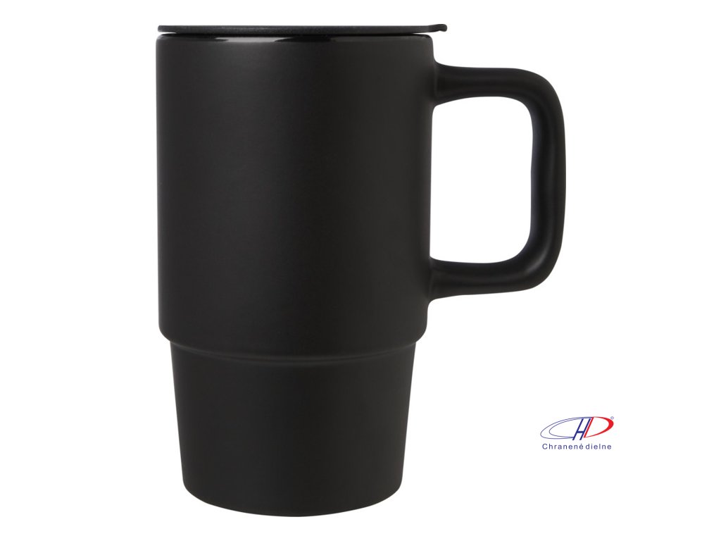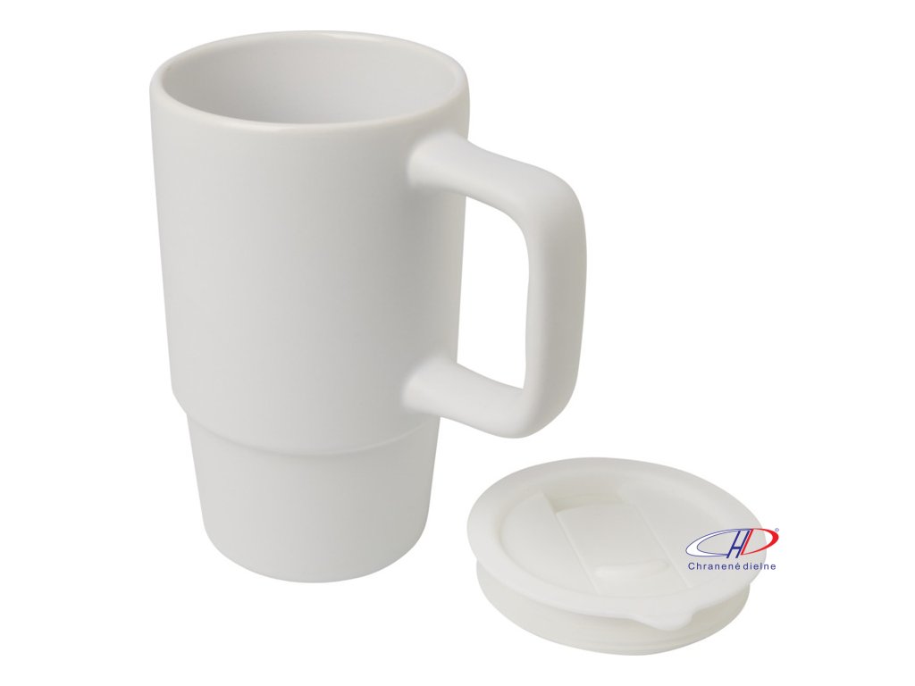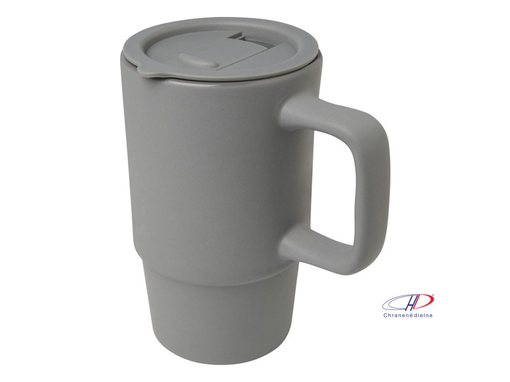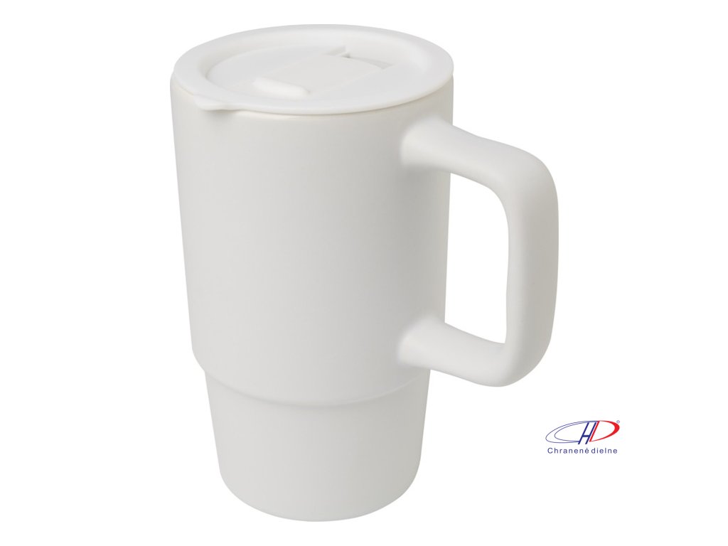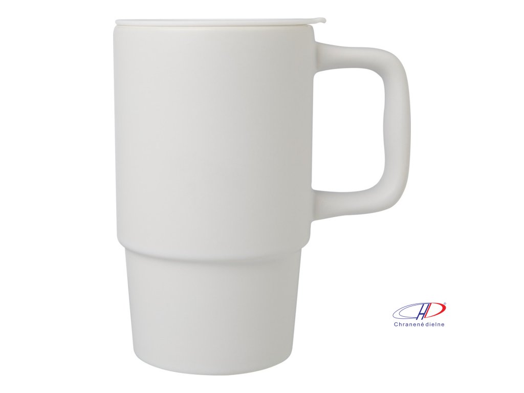 Keramický hrnček s veľkým uchom na ľahké prenášanie a plastovým viečkom odolným proti rozliatiu. Vonkajší povrch má štýlový matný povrch a fľaša je pri všetkých metódach tlače vhodná do umývačky riadu. Krabička z recyklovanej lepenky. Objem: 450 ml.Dodatočné parametre