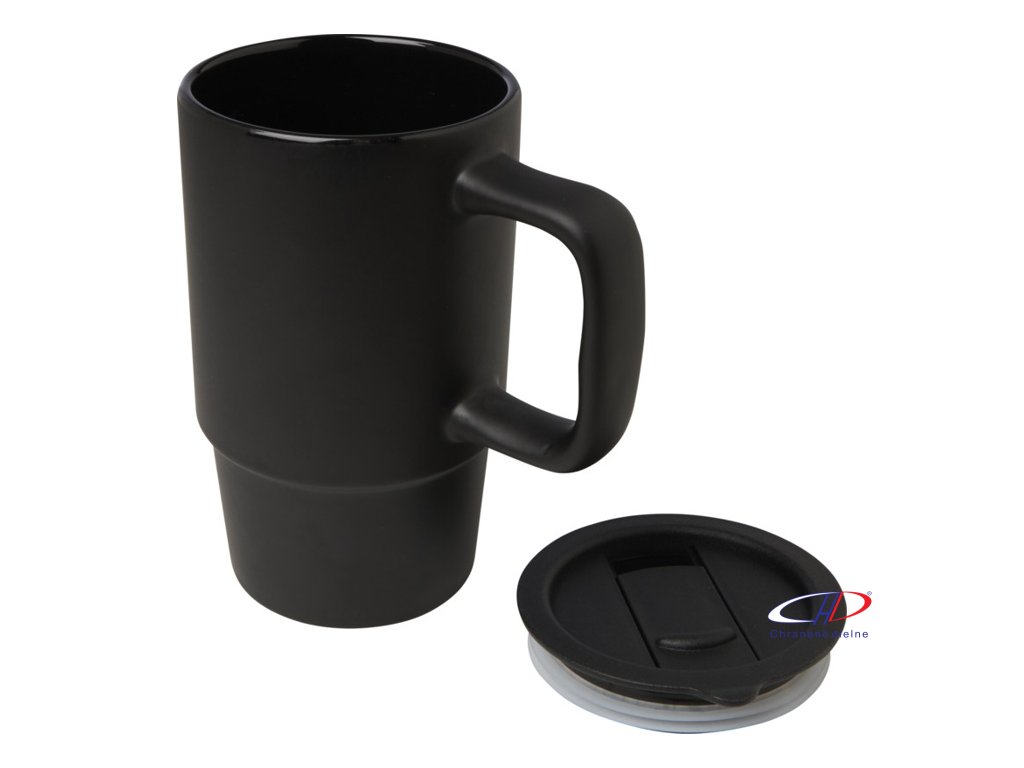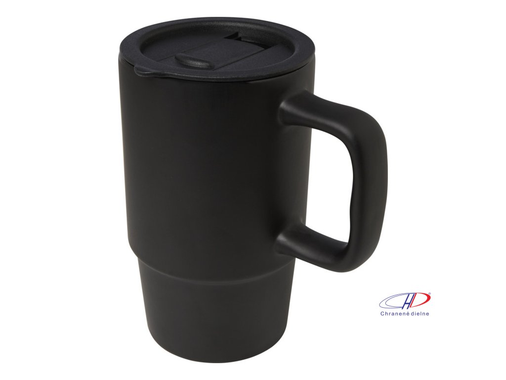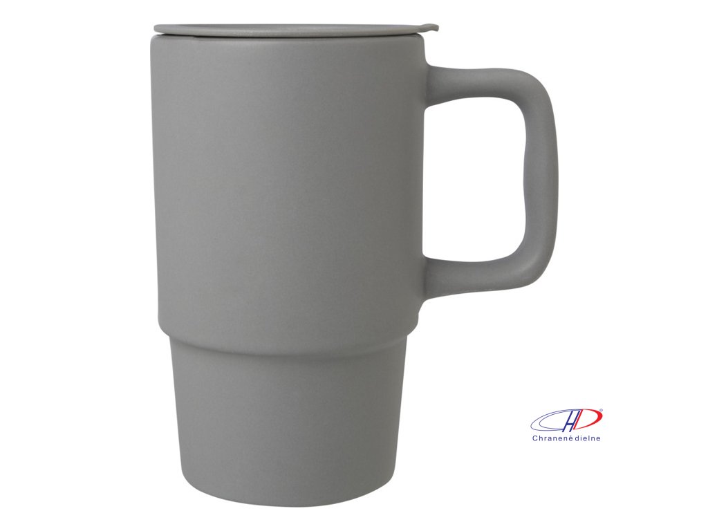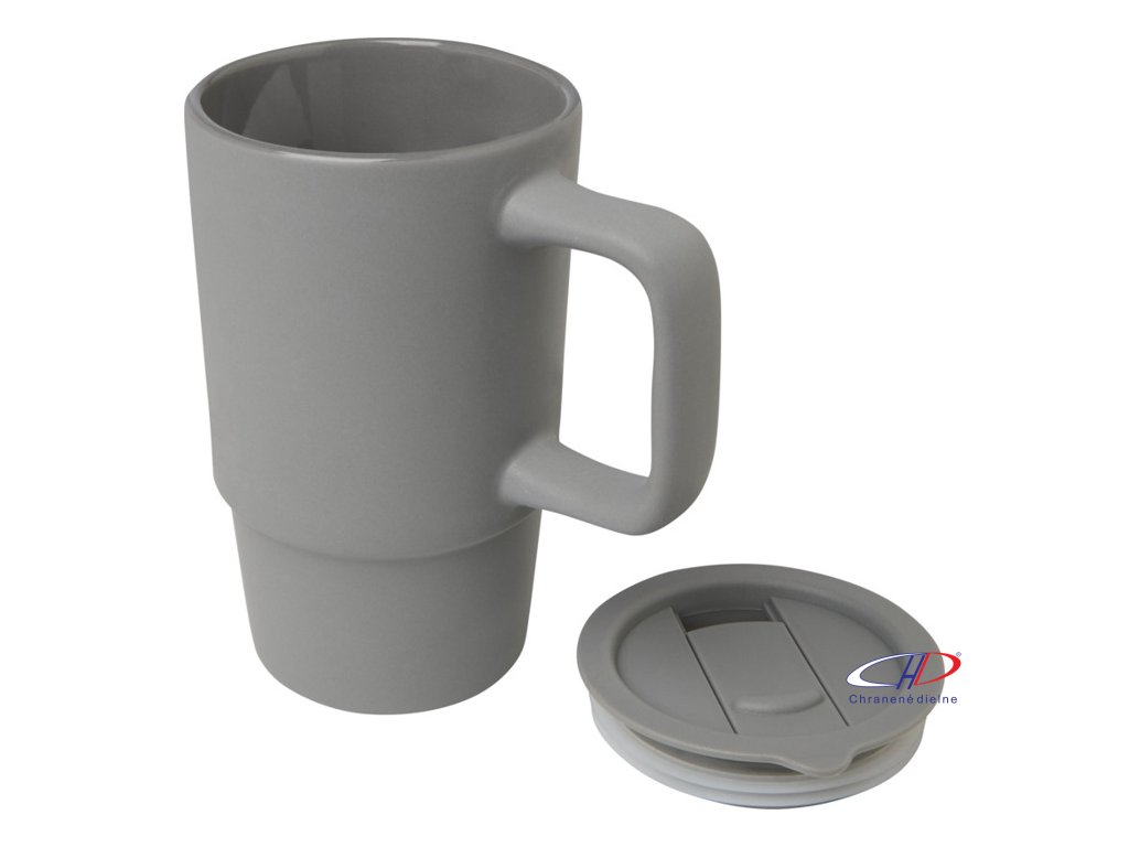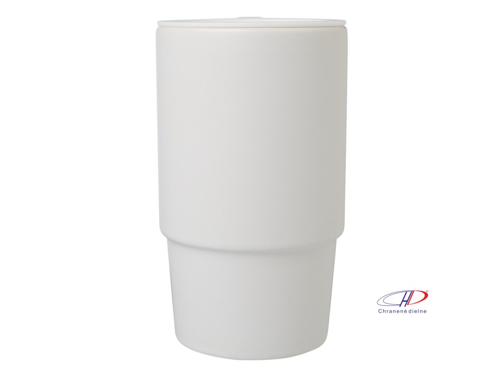 Keramický hrnček s veľkým uchom na ľahké prenášanie a plastovým viečkom odolným proti rozliatiu. Vonkajší povrch má štýlový matný povrch a fľaša je pri všetkých metódach tlače vhodná do umývačky riadu. Krabička z recyklovanej lepenky. Objem: 450 ml.Dodatočné parametre