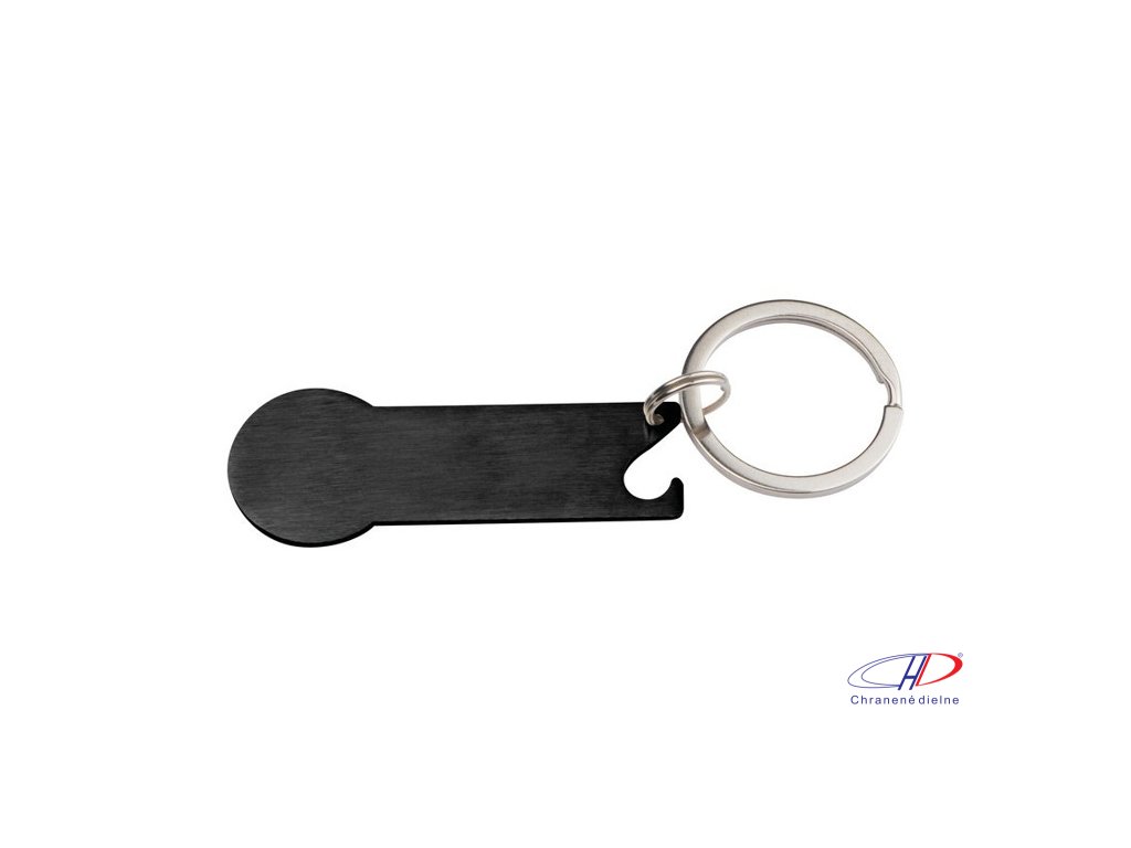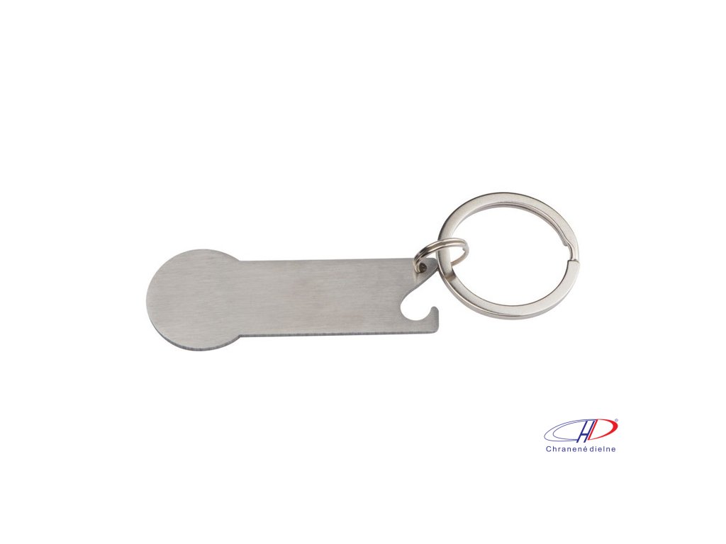 Kovová kľúčenka s integrovaným žetónom do nákupných košov a s praktickým krúžkom na kľúče.Dodatočné parametre