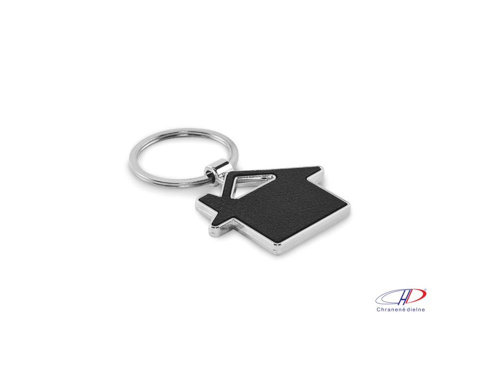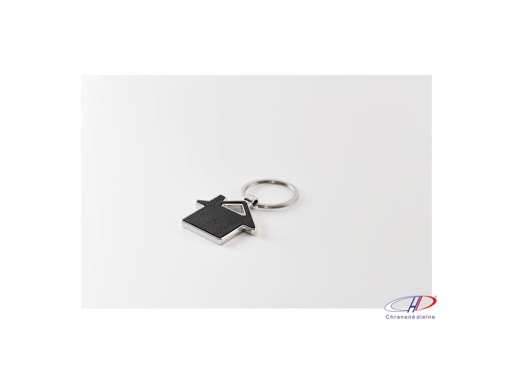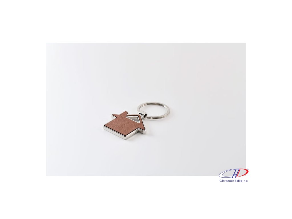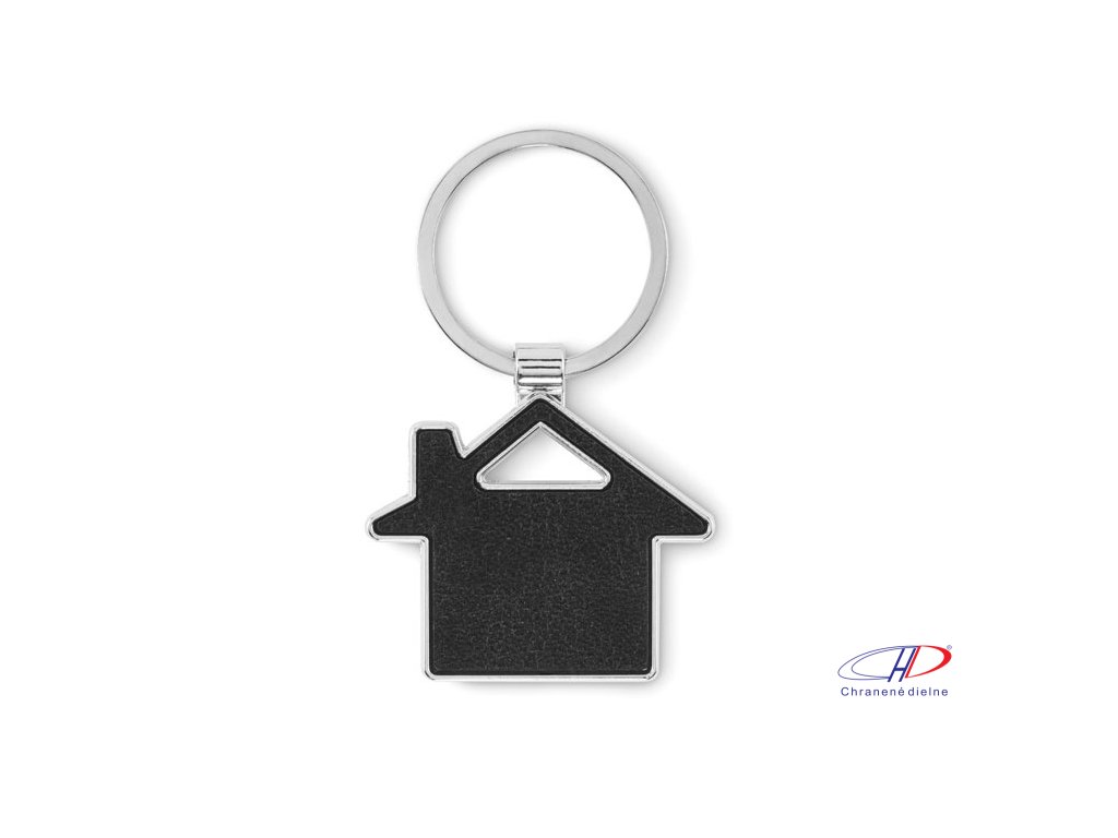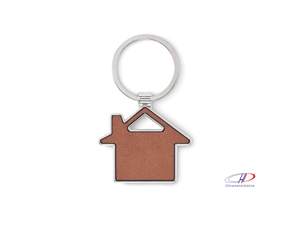Kľúčenka v tvare domčeka s vložkou z recyklovanej PU kože.Dodatočné parametre