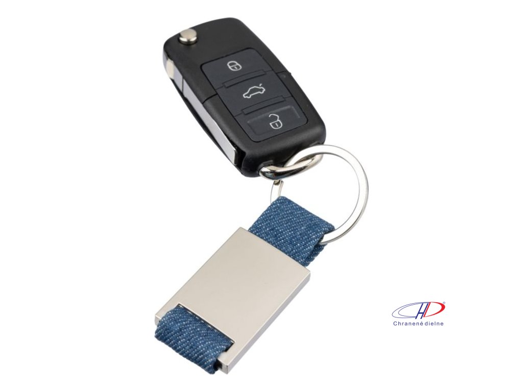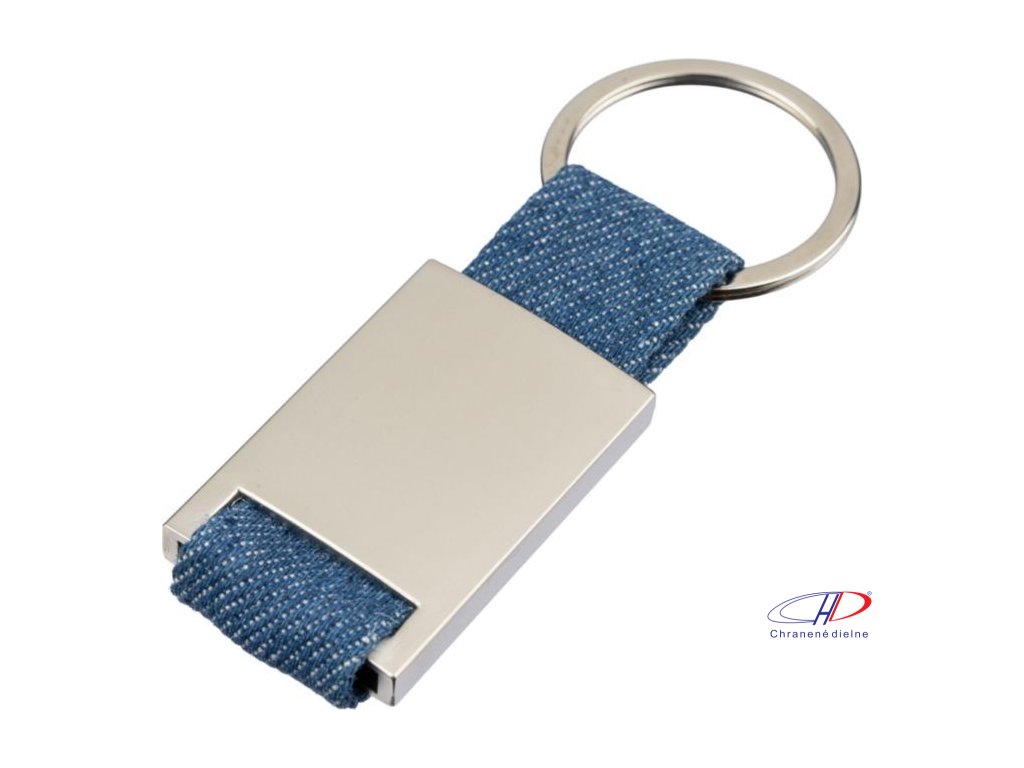 Kľúčenka z džínsoviny a zliatiny zinku s kovovým krúžkom. Odolná a štýlová kombinácia materiálov na každodenné použitie. Jednotlivo balená v obale z kraftového papiera.Dodatočné parametre
