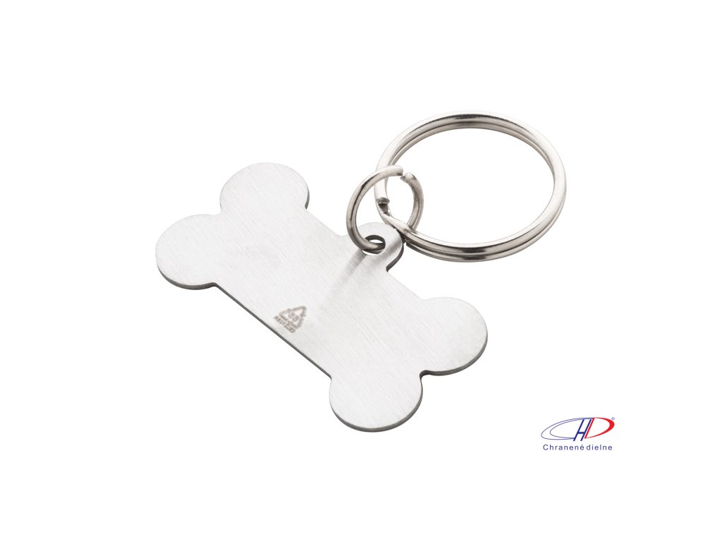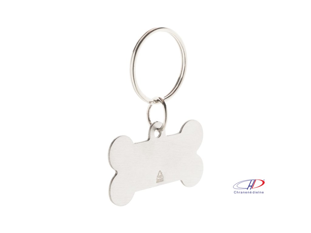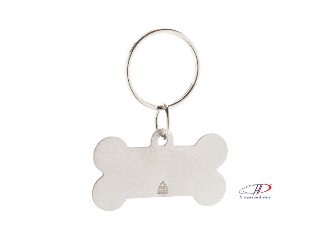 Psie známka z recyklovanej nerezovej ocele v tvare kosti s krúžkom na kľúče.Dodatočné parametre