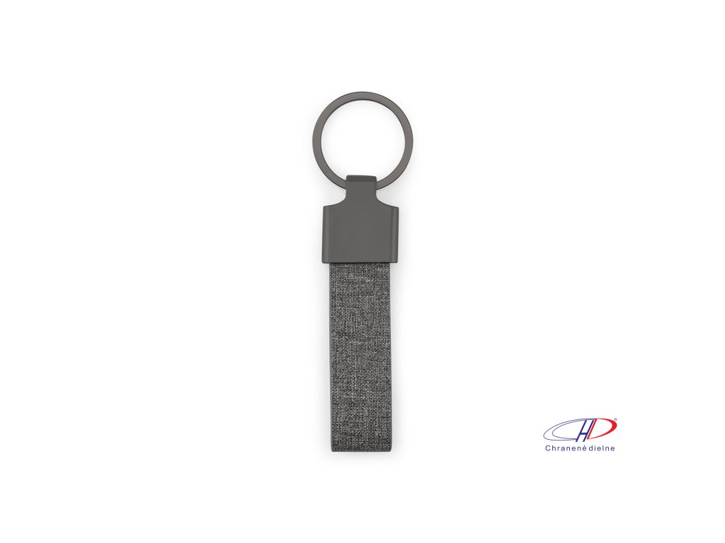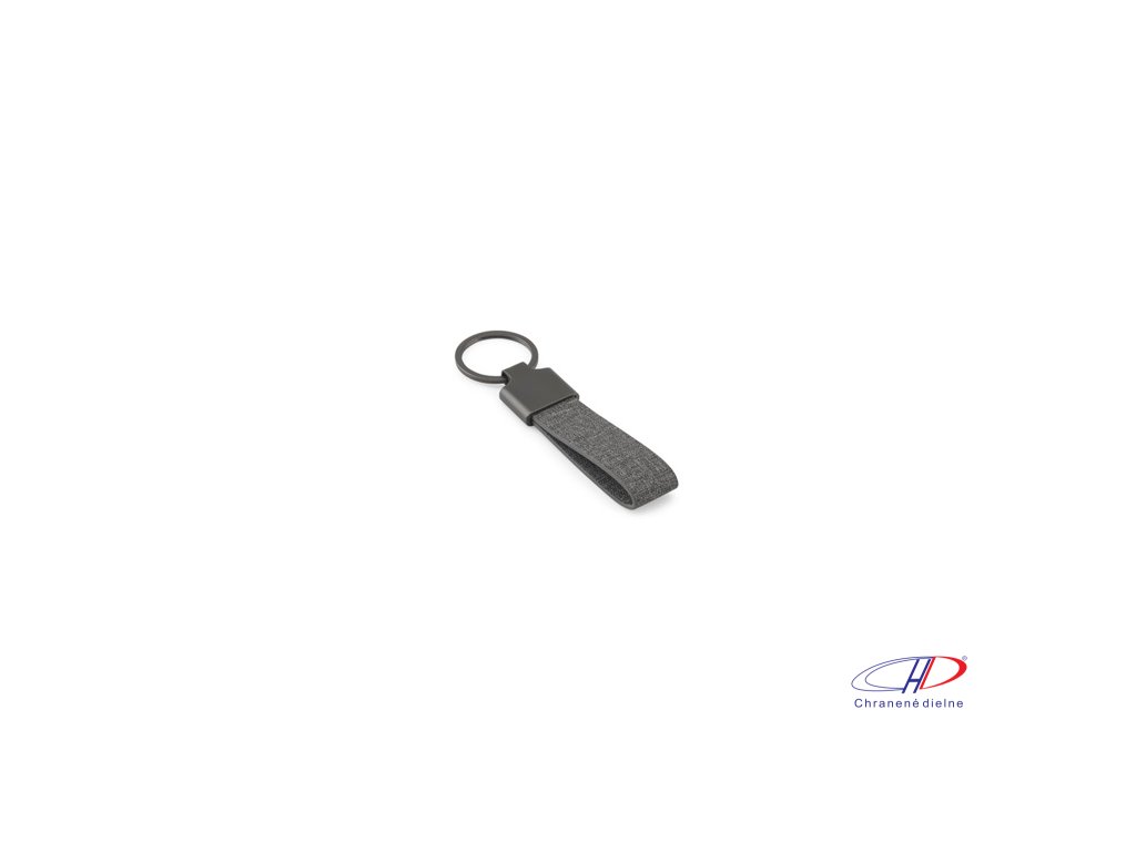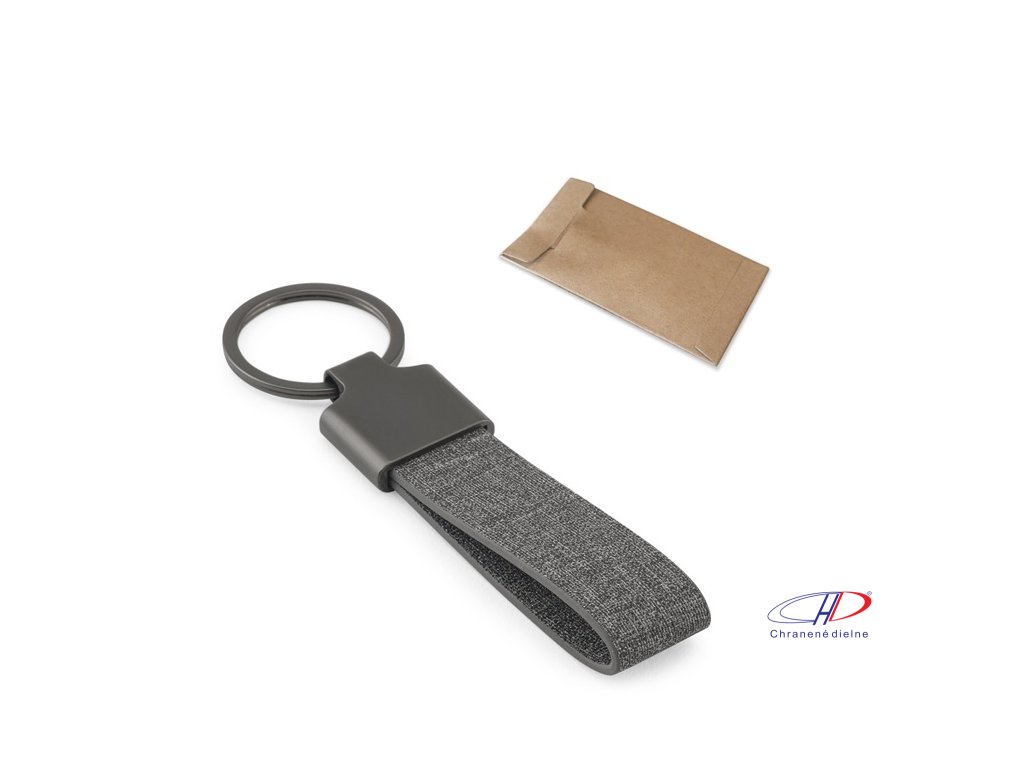 Obdĺžnikový prívesok na kľúče z kovu a recyklovaného PET (30% rPET). Má krúžok pre jednoduchšie umiestnenie kľúčov a drobných predmetov. Dodávané v kraftovom papierovom vrecku.Dodatočné parametre