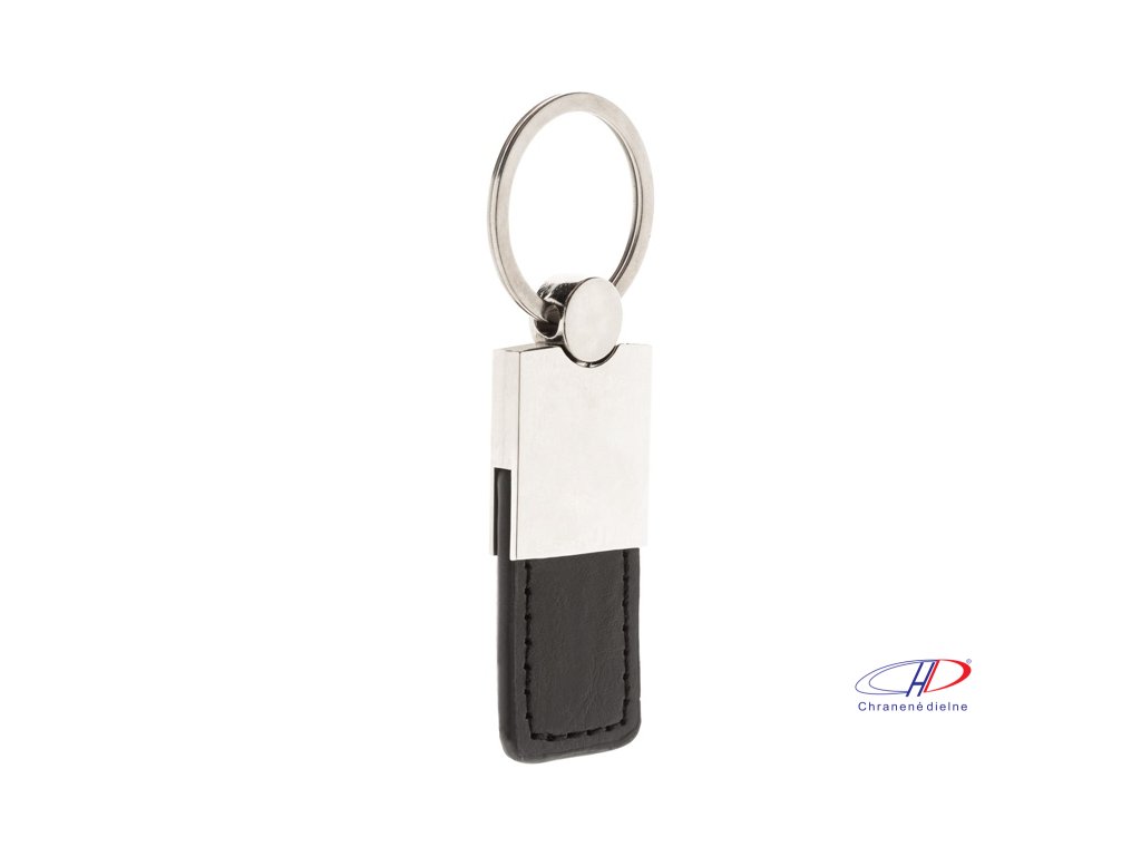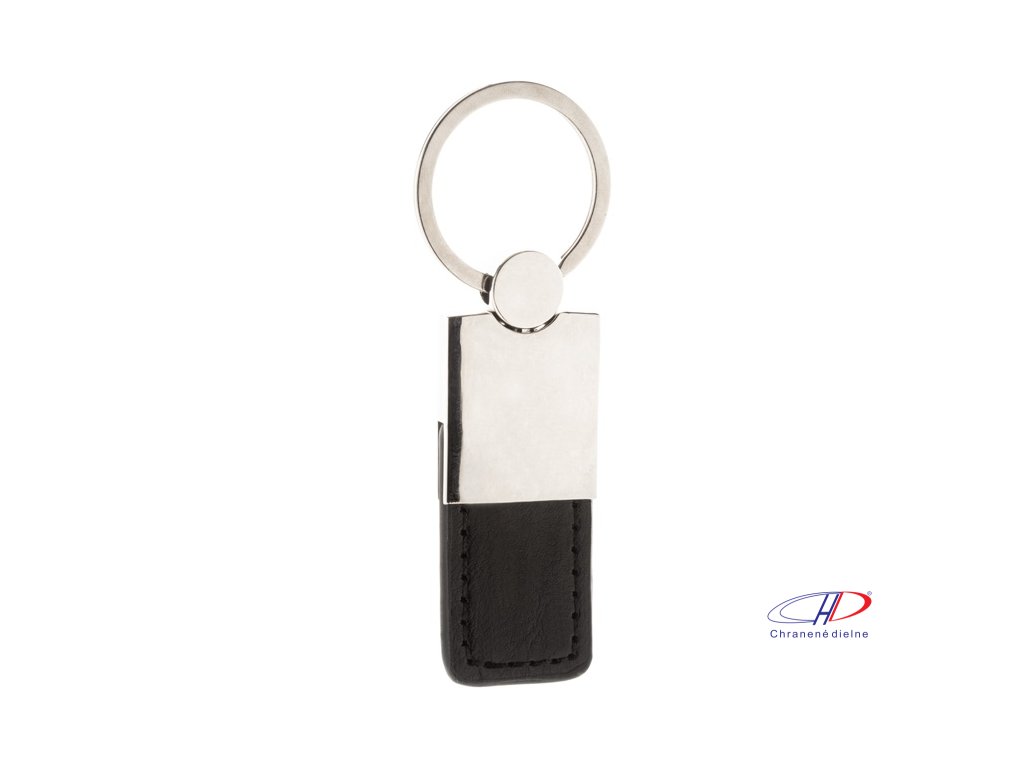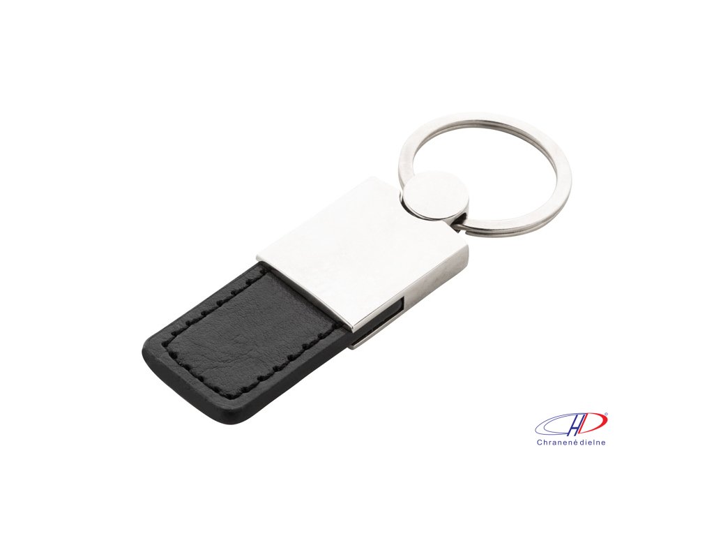 Prívesok na kľúče z kovu a PU kože. V kraftovej papierovej krabičke.Dodatočné parametre