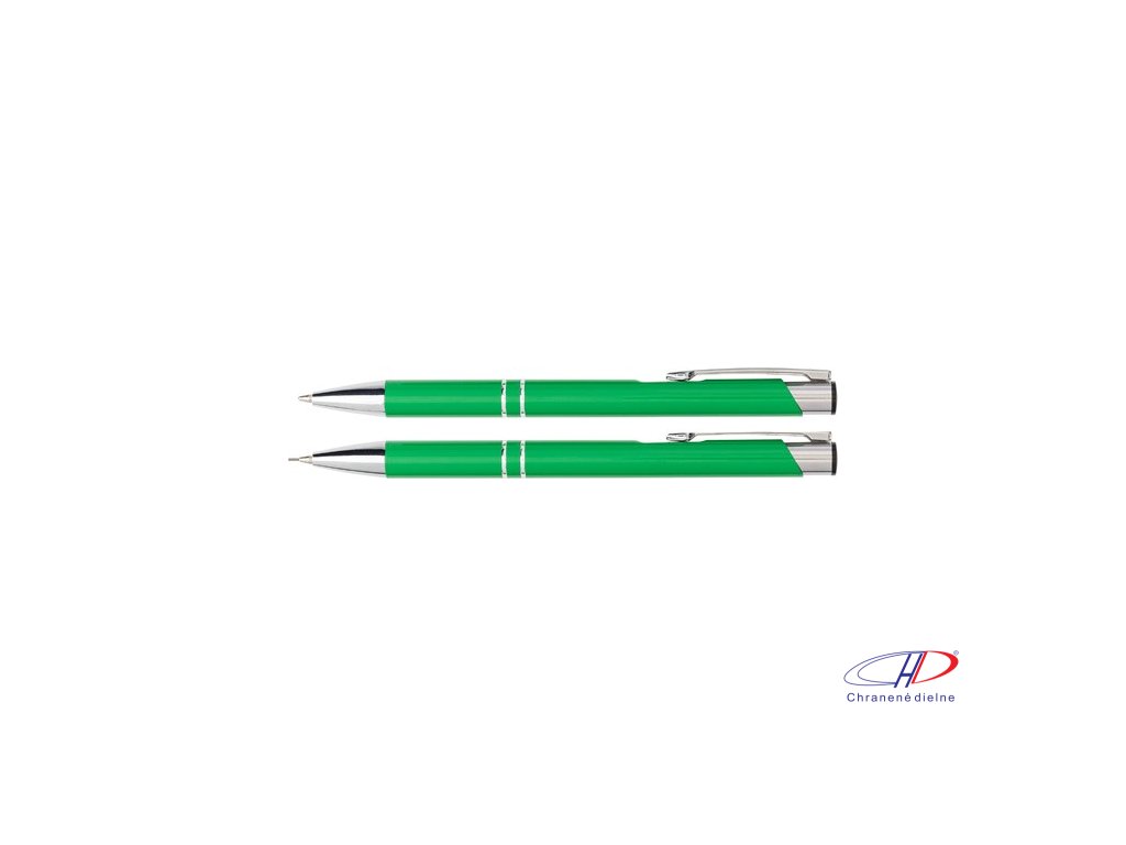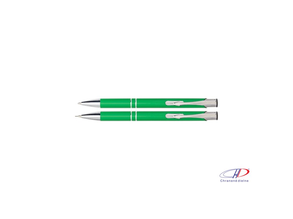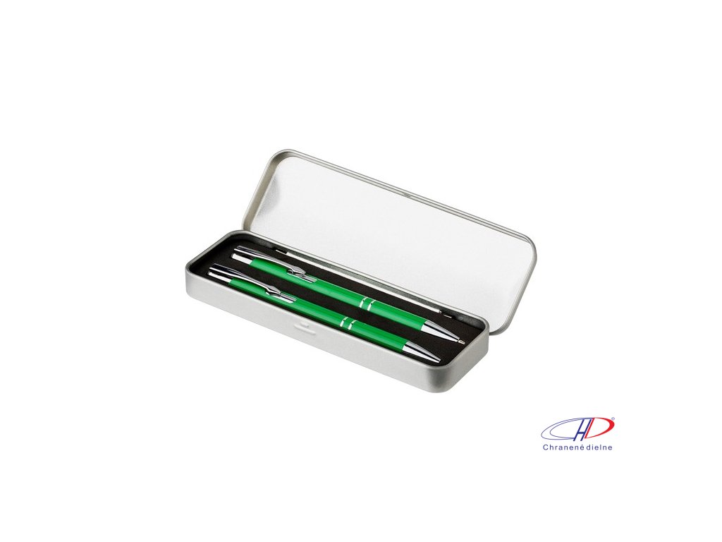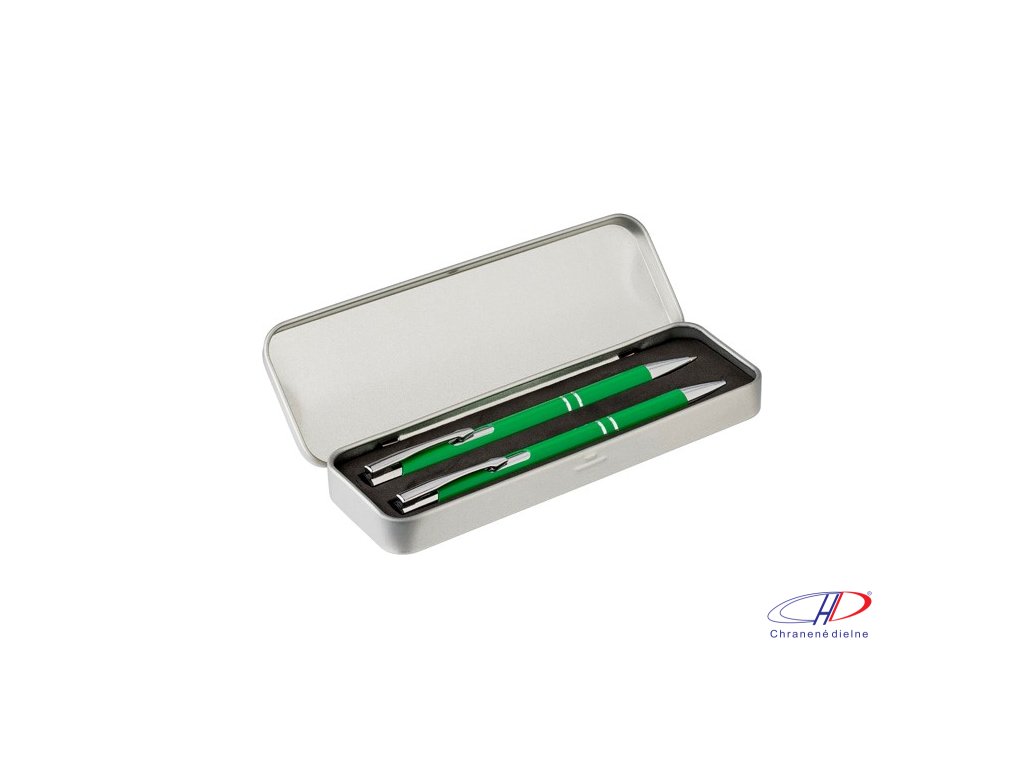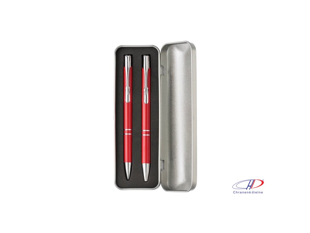 Hliníková písacia súprava pozostávajúca z guľôčkového pera s modrým atramentom a mechanickej ceruzky. Balené v kovovom púzdre.Dodatočné parametre