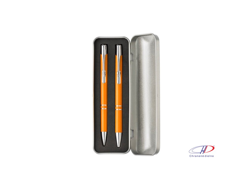 Kovová sada guľôčkové pero (modrá náplňa) a ceruzka , Orange