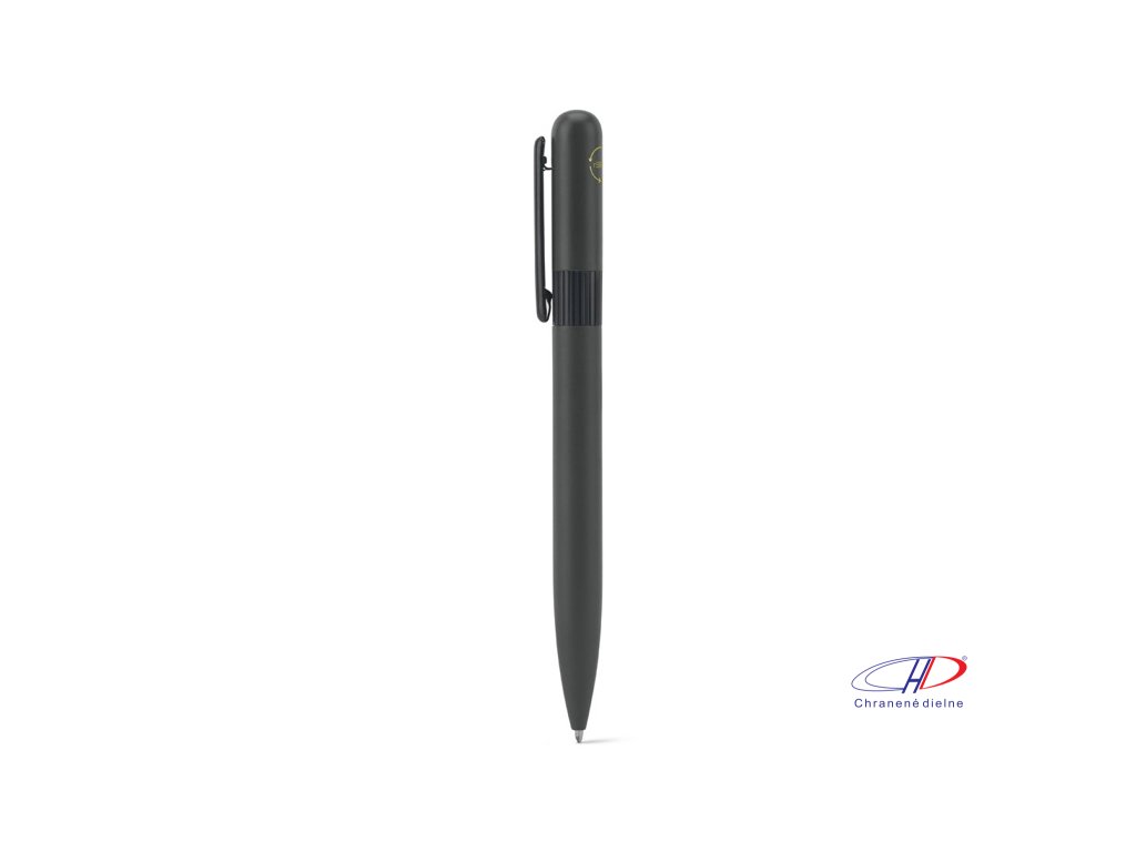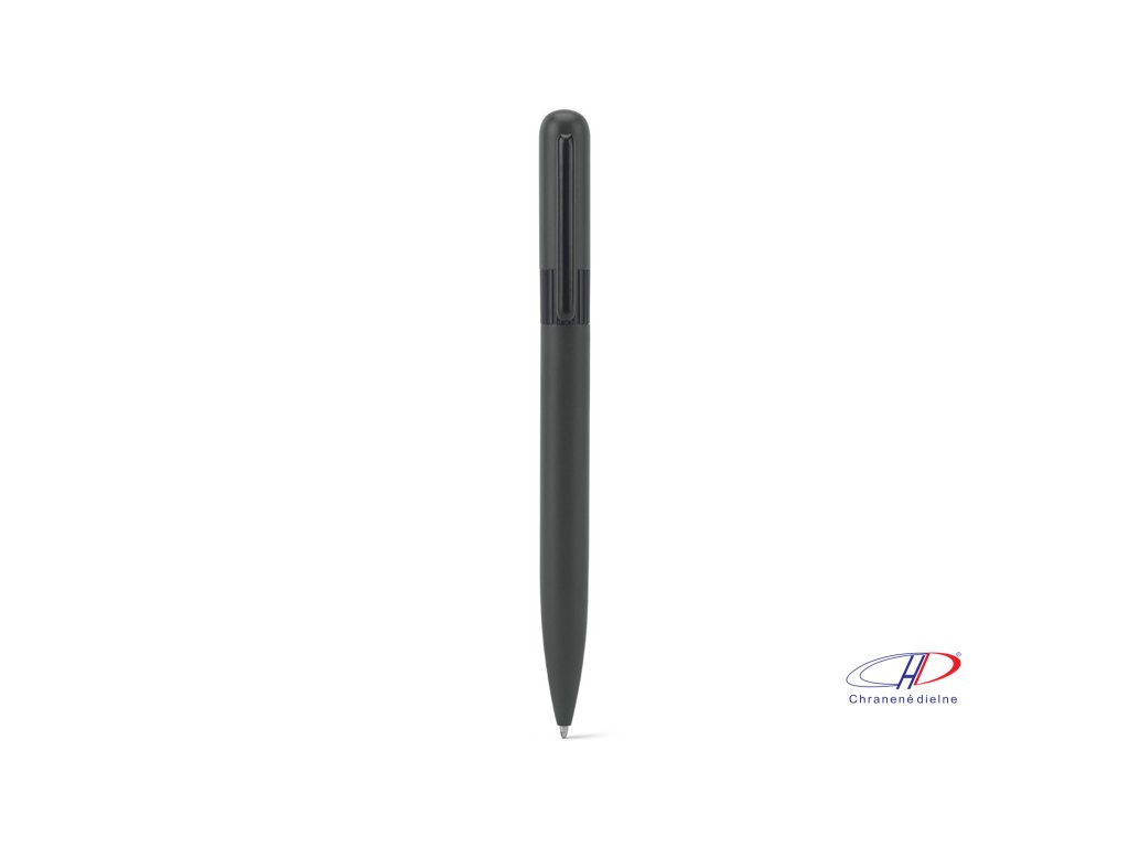 Guľôčkové pero vyrobené z kovu (60% recyklované) s zaobleným dizajnom. Má klip, otočný mechanizmus a čierny atrament. Dodávané v darčekovej krabičke z kraftového papiera, vyrobené z certifikovaného FSC™ materiálu a iných kontrolovaných materiálov.Dodatočné parametre