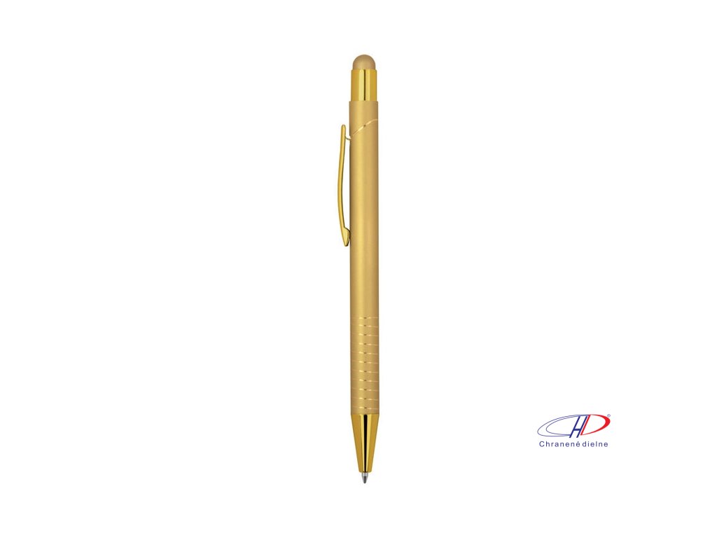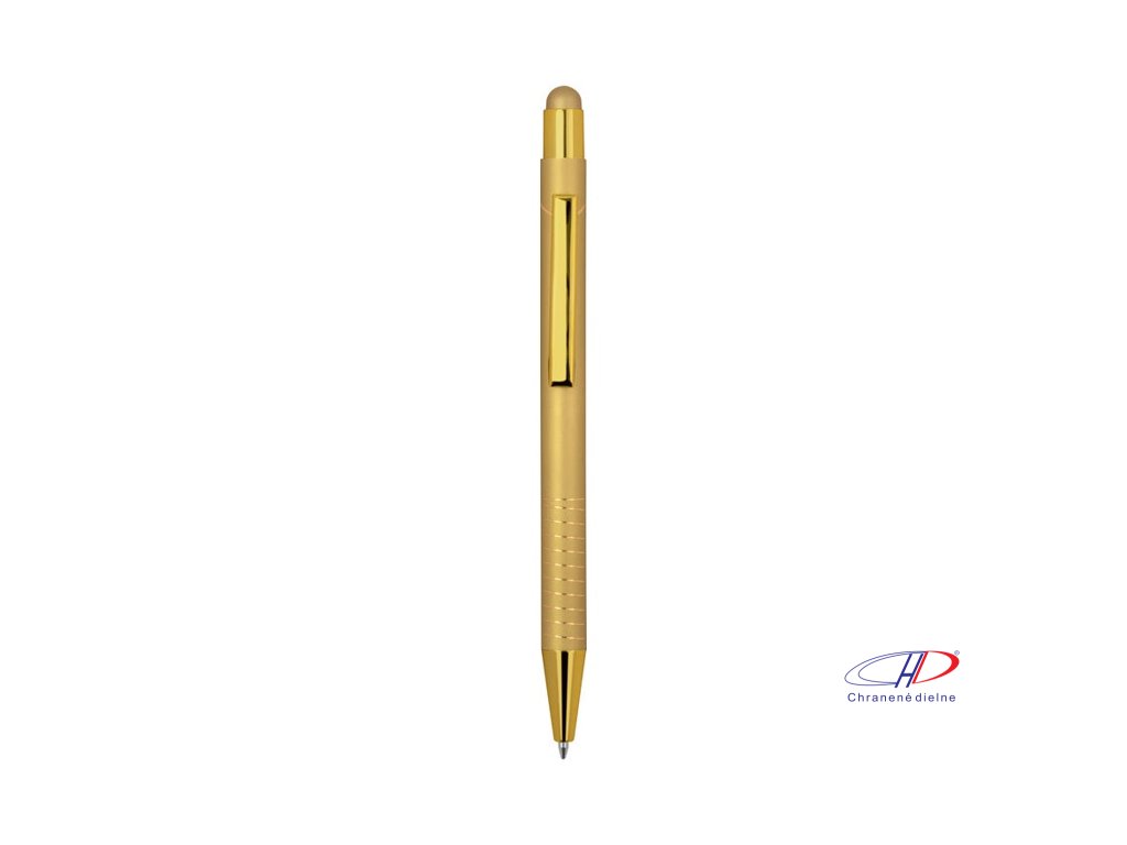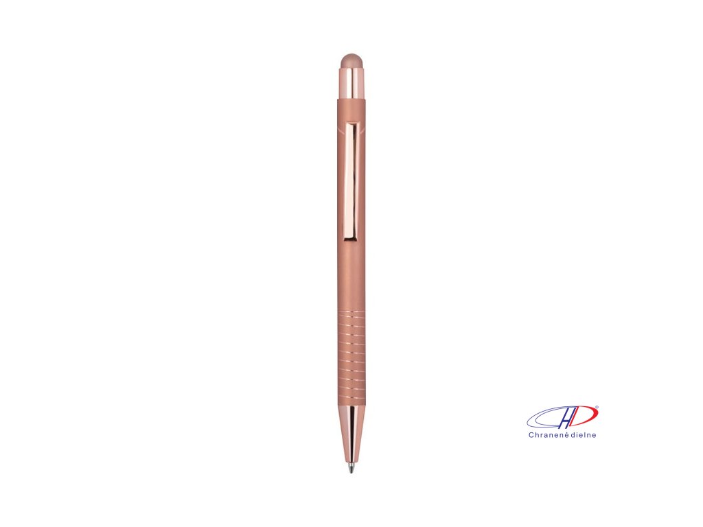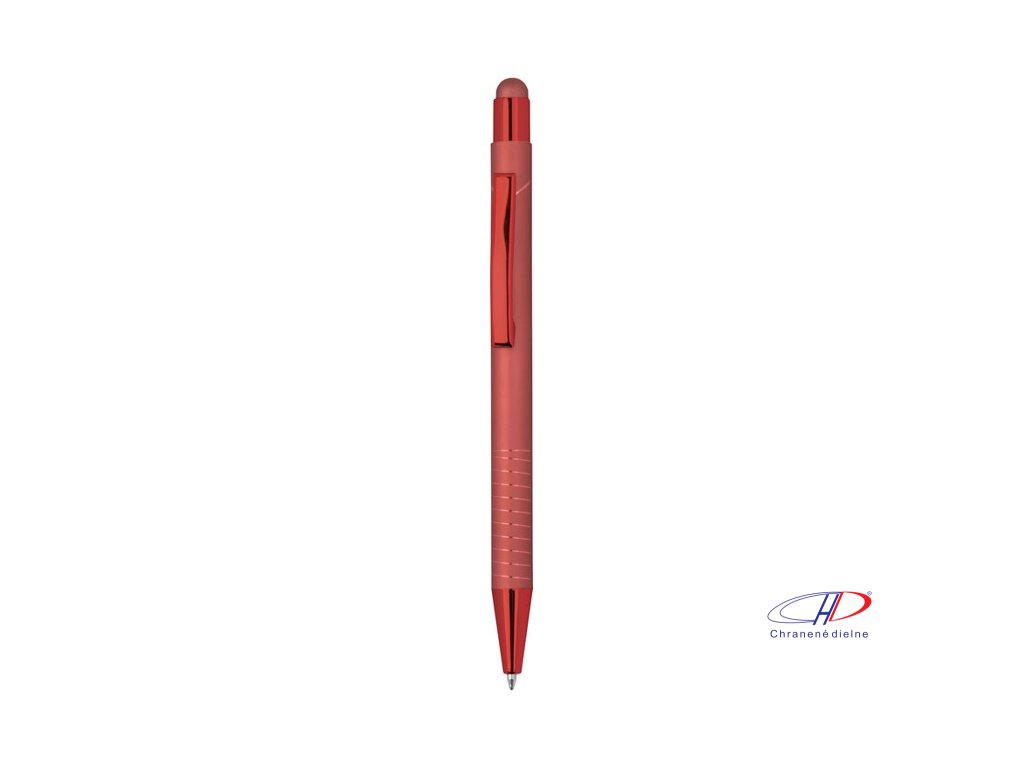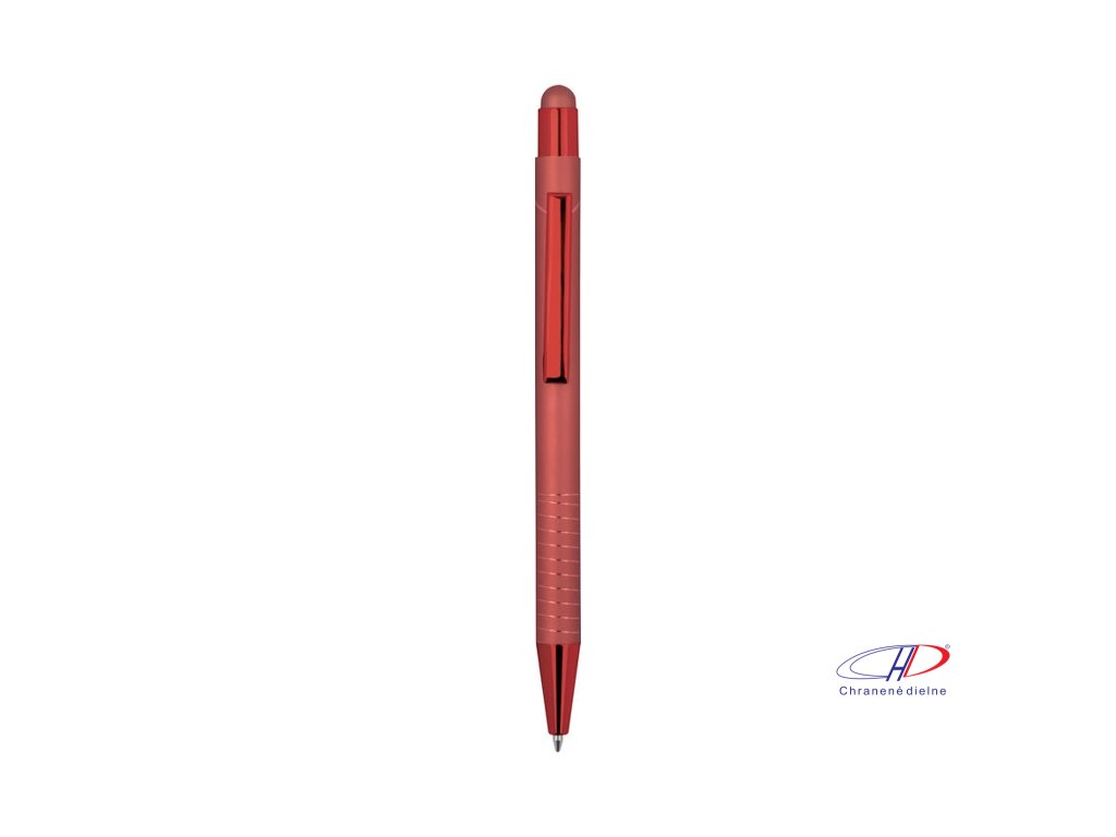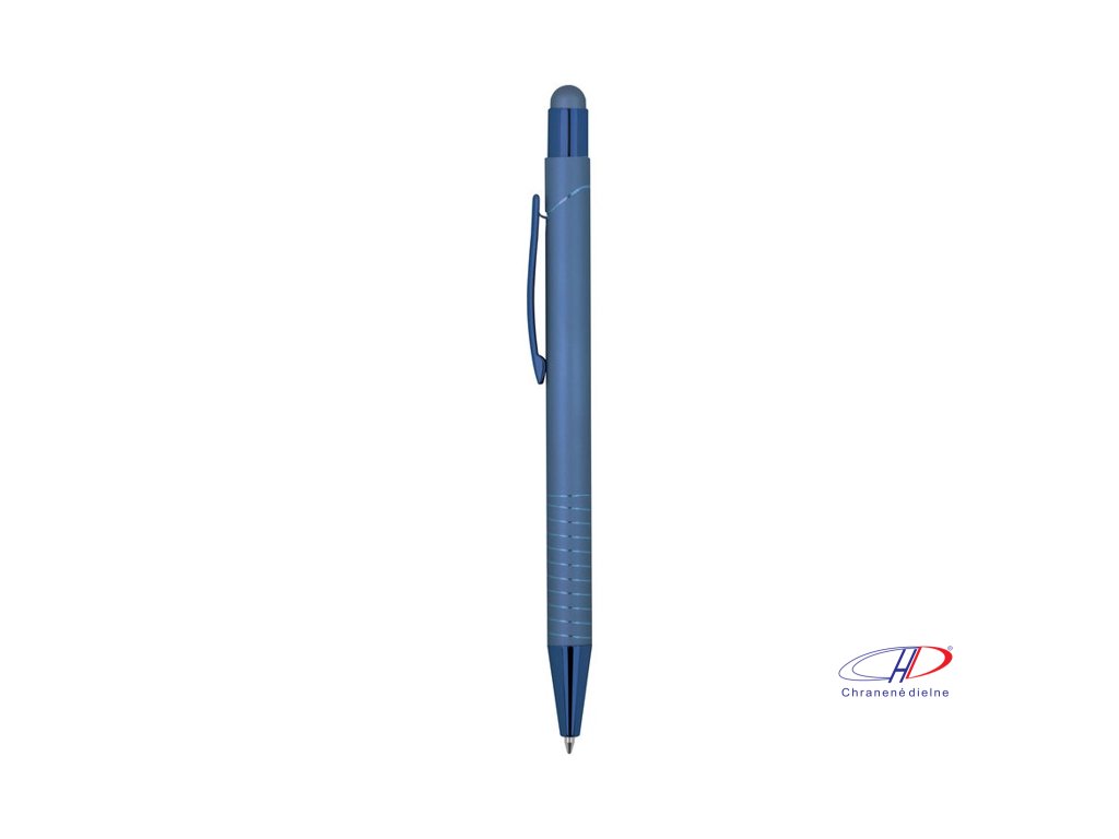 Guľôčkové pero s integrovaným stylusom pre smartfóny a tablety. Lesklý farebný zrkadlový povrch, modrá náplň