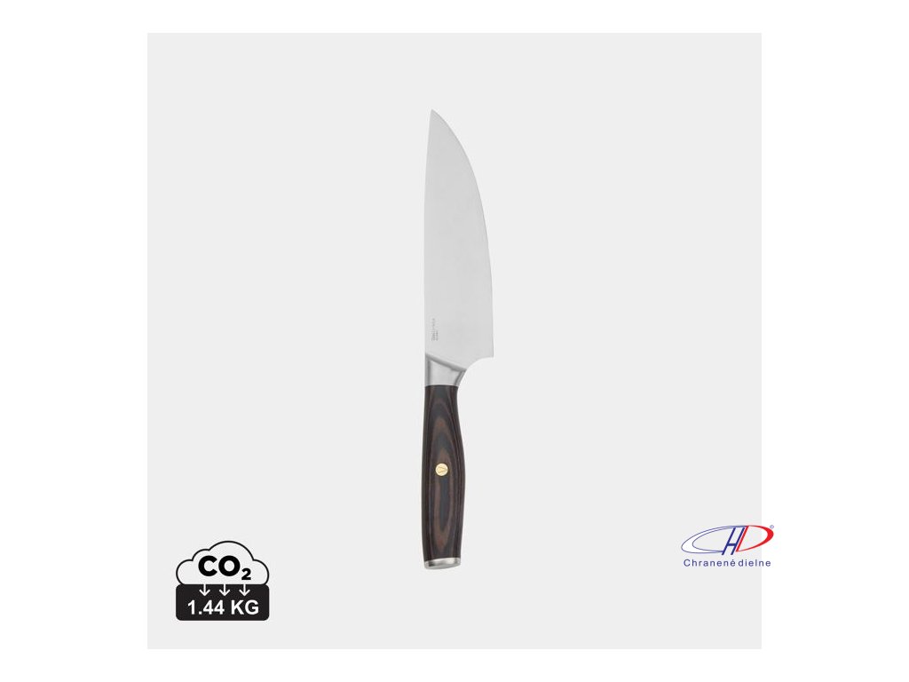 Nôž je možné použiť na krájanie, sekanie, krájanie na kocky. Veľkosť noža: 33 cm (čepeľ 21 cm). Nôž je vyrobený z vysoko kvalitnej nerezovej ocele. Krásna rukoväť pakkawood. RCS certifikácia. Podiel recyklátu: 27%.Dodatočné parametre