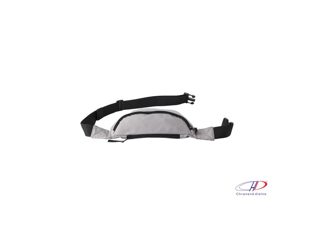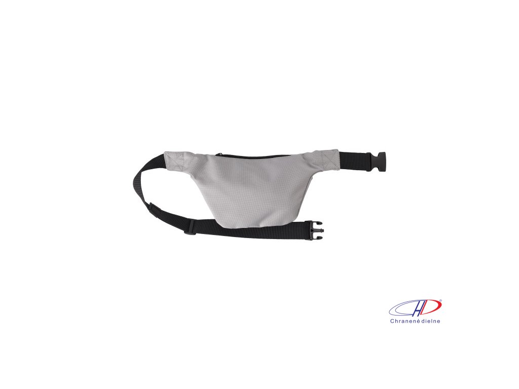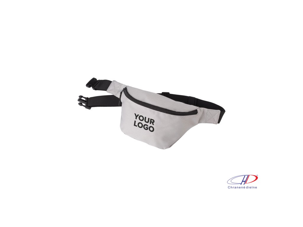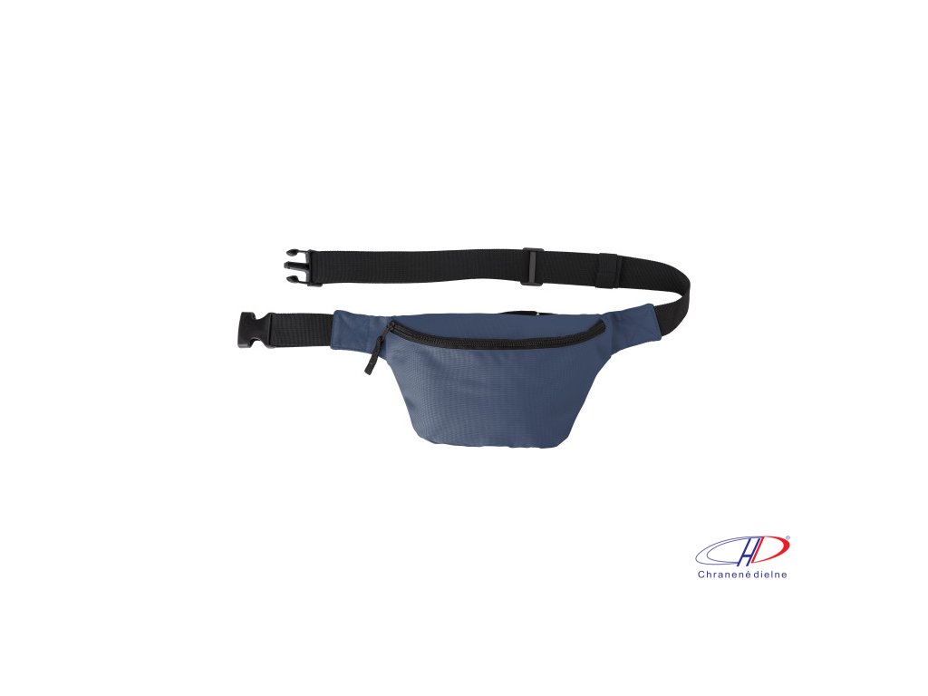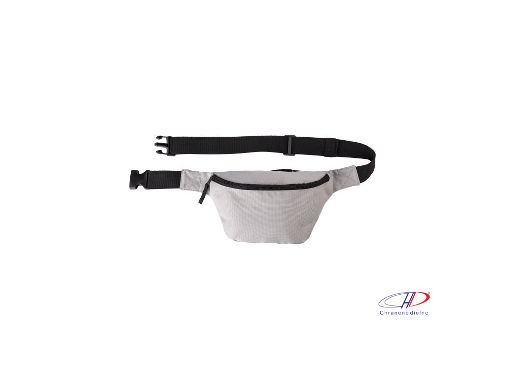 Polyesterová taška (600D) s jedným predným vreckom a jedným malým vreckom na zadnej strane. Obe vrecká sa dajú zapnúť na zips. S čiernym nastaviteľným popruhom s pevným zapínaním na pracku.