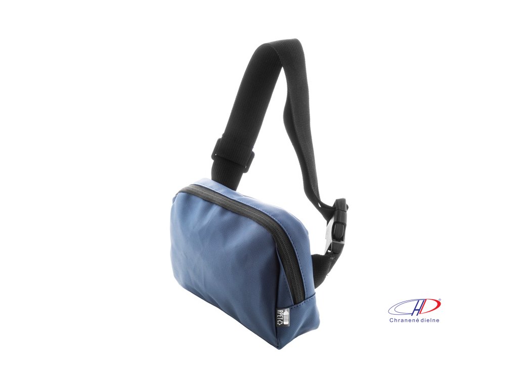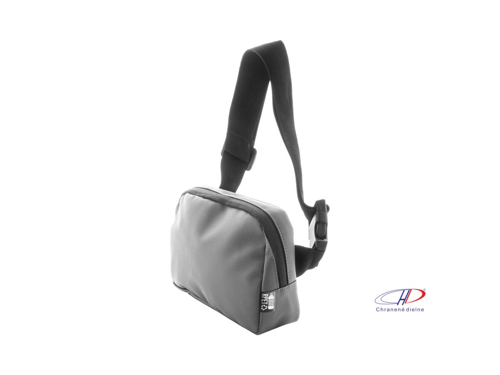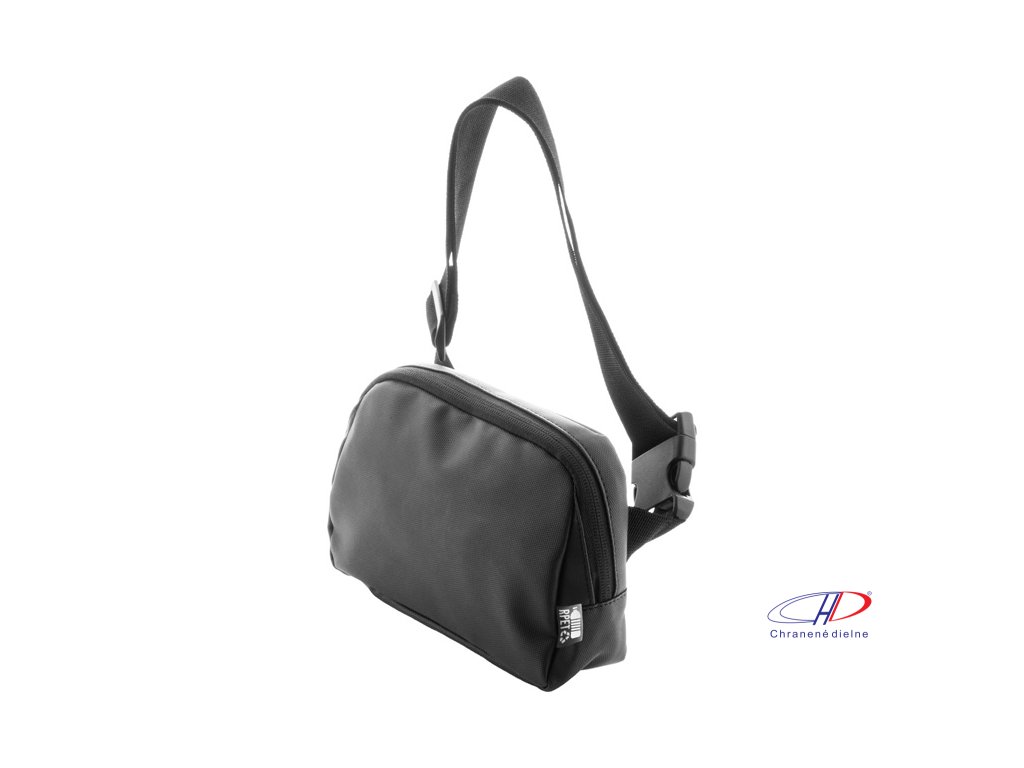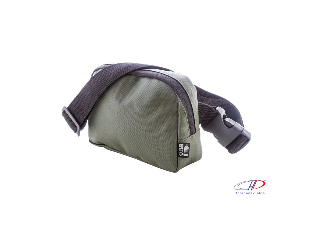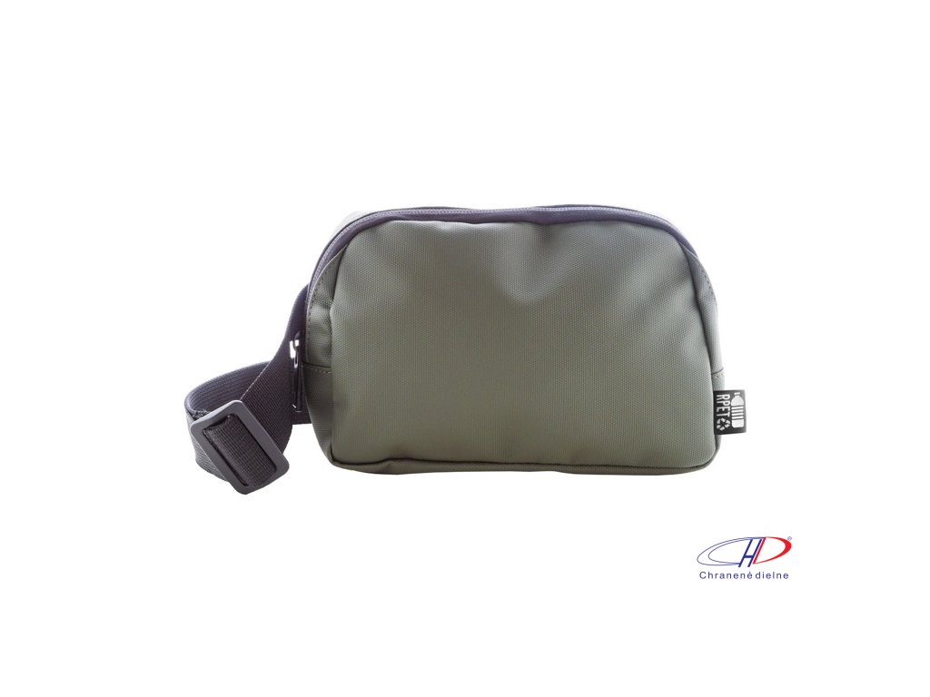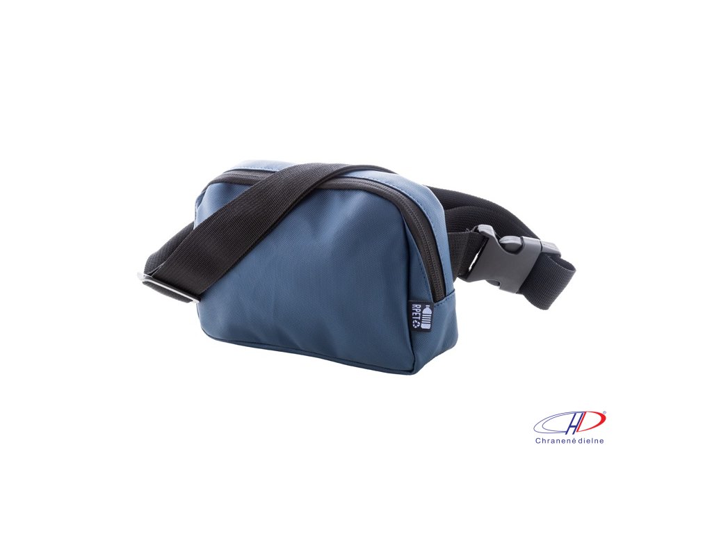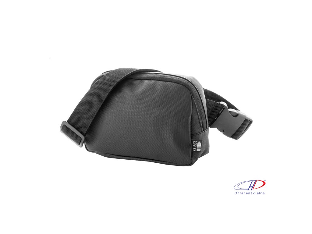 Vodotesná RPET oblička s 2 priehradkami na zips, sieťovanými vnútornými vreckami s organizérom a nastaviteľným popruhom. Polyester 600D RPET potiahnutý PU, s výrazným štítkom RPET.Dodatočné parametre