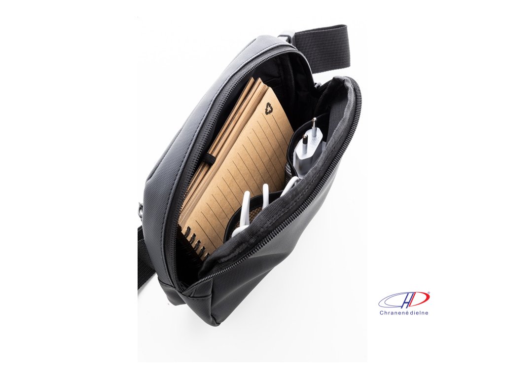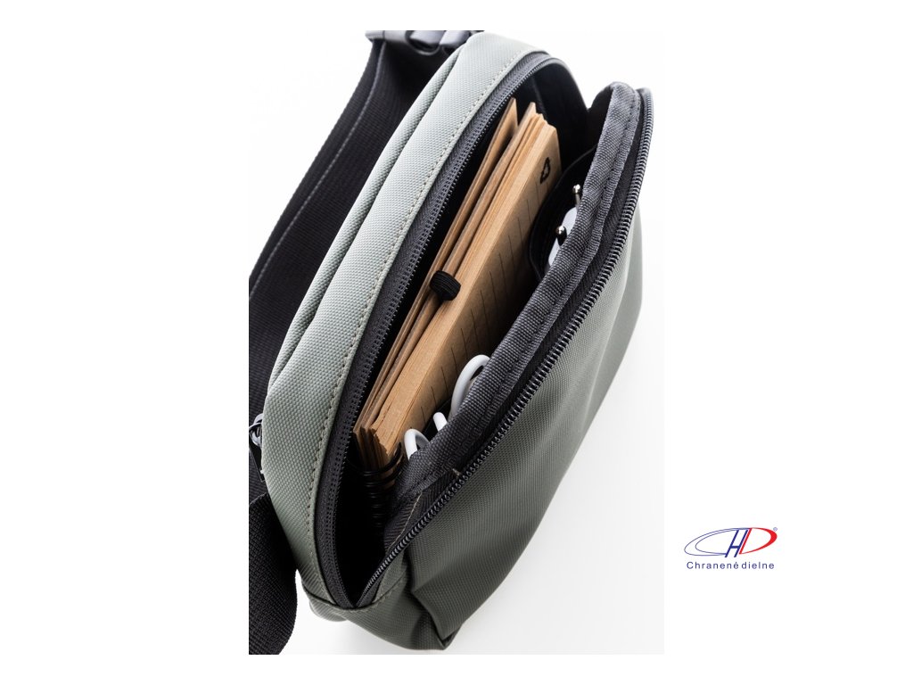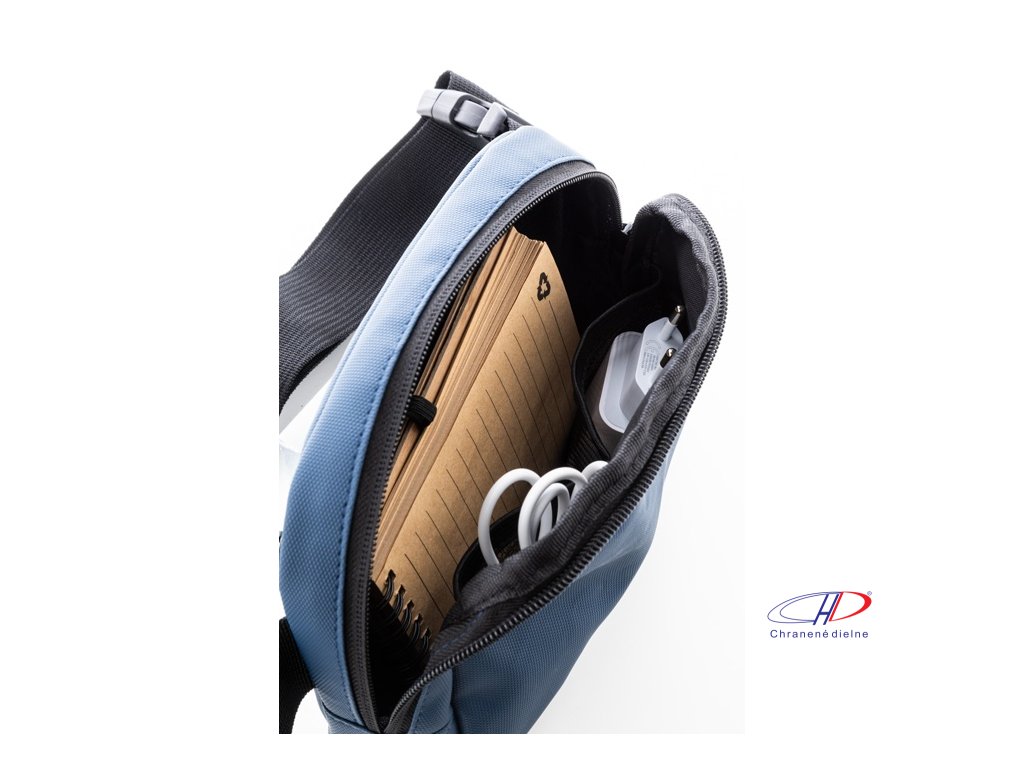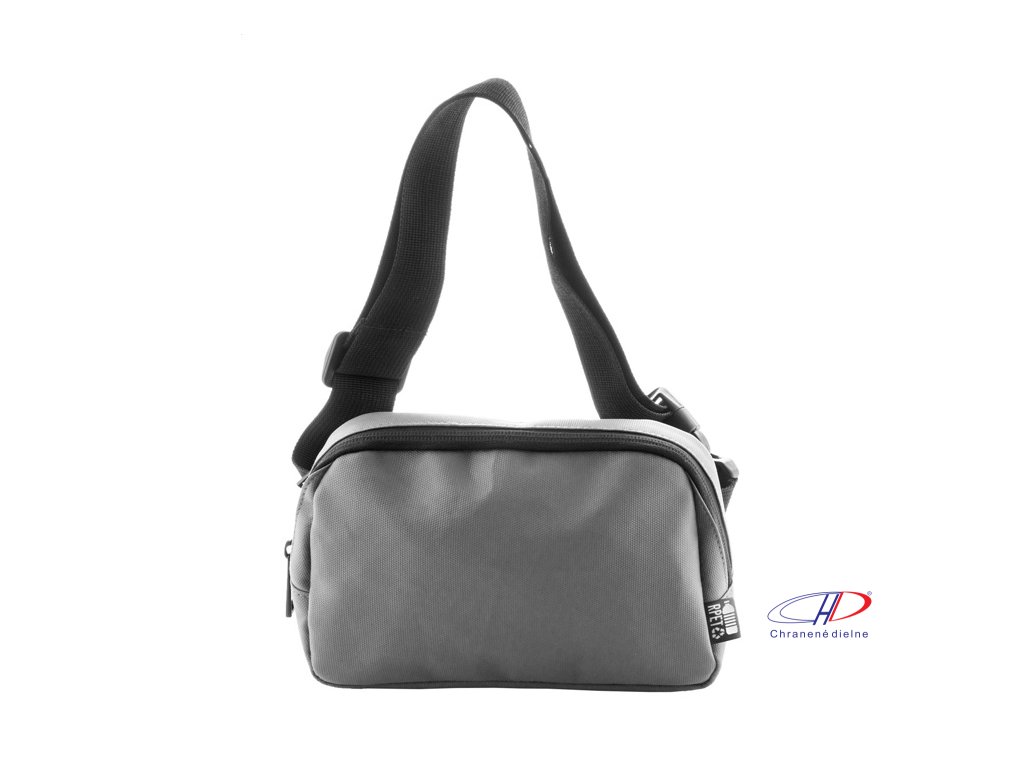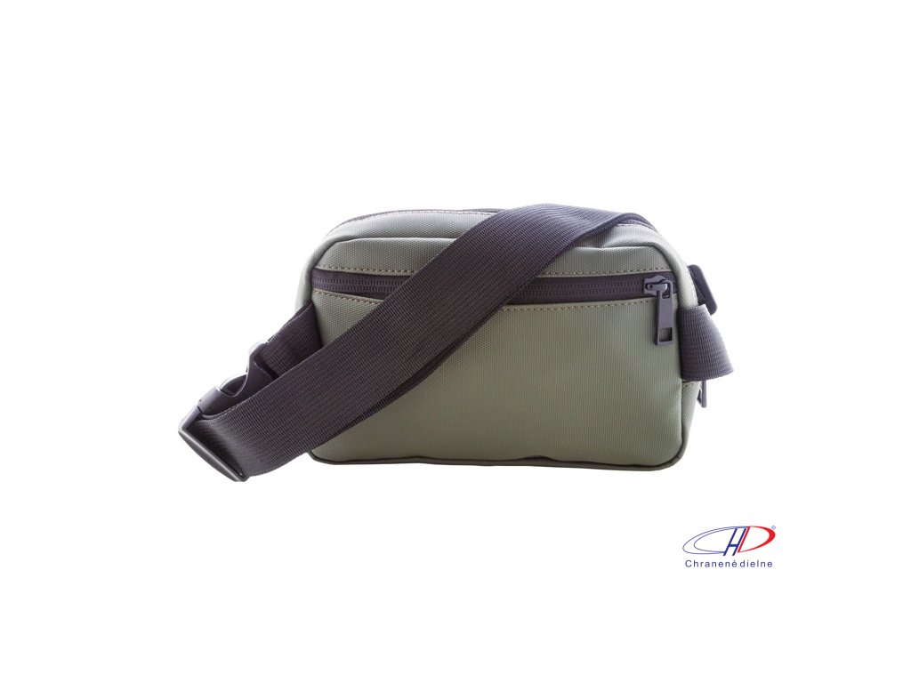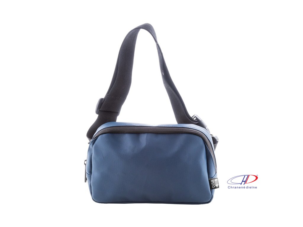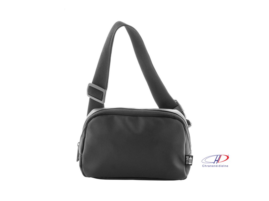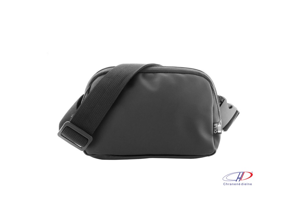Vodotesná RPET oblička s 2 priehradkami na zips, sieťovanými vnútornými vreckami s organizérom a nastaviteľným popruhom. Polyester 600D RPET potiahnutý PU, s výrazným štítkom RPET.Dodatočné parametre