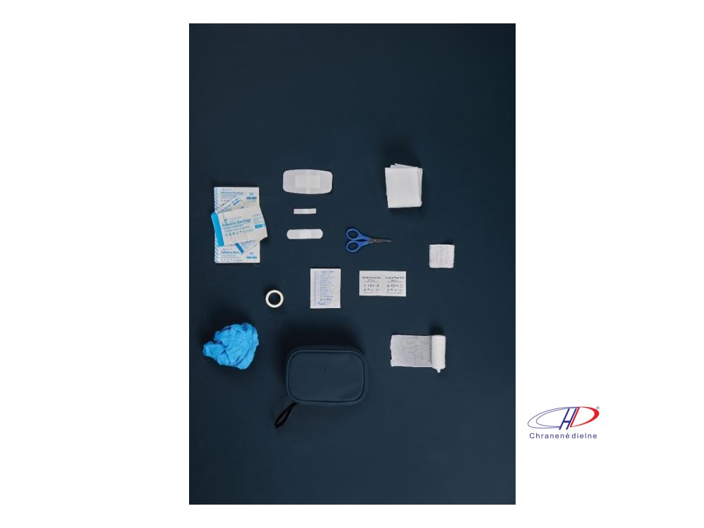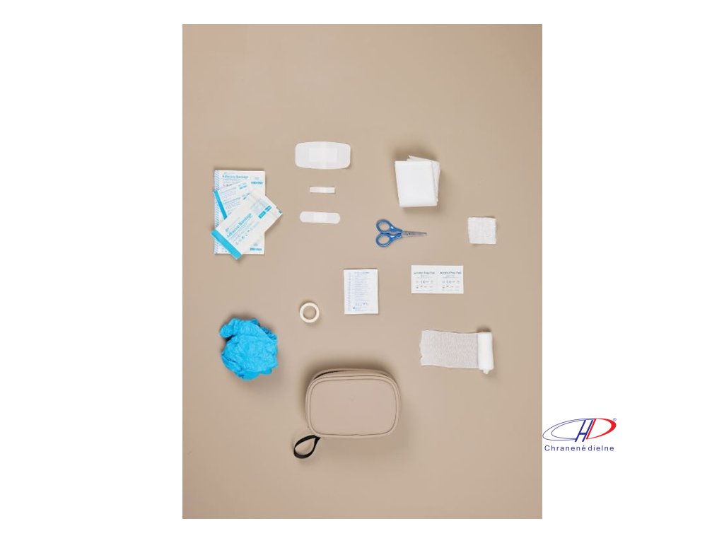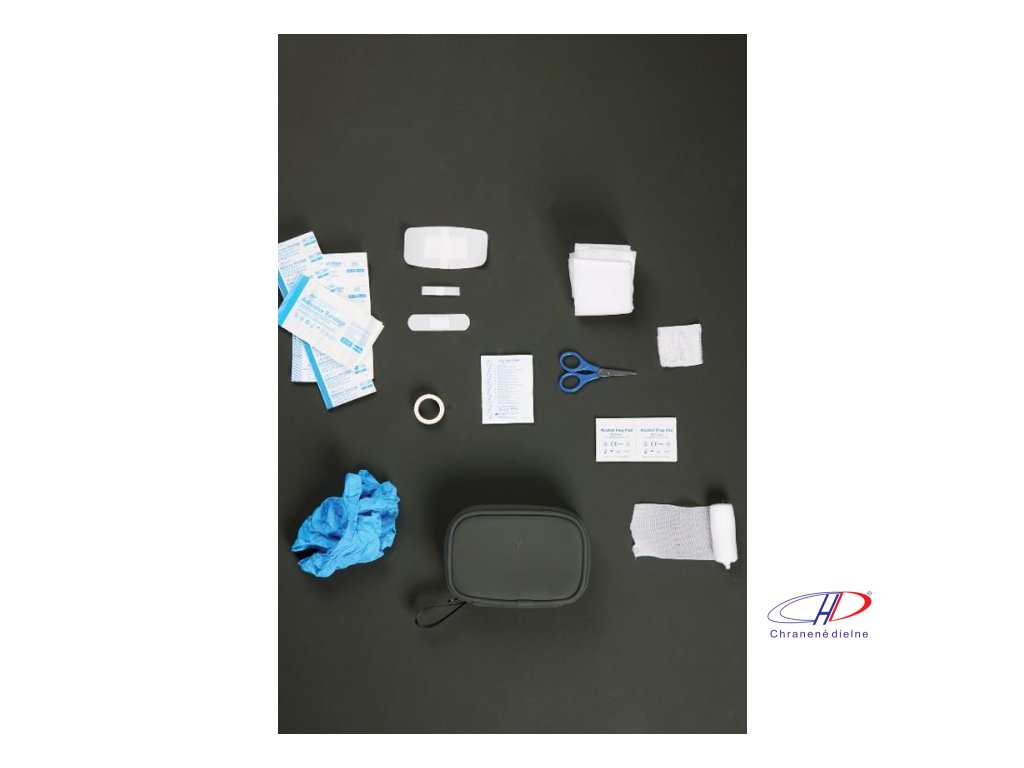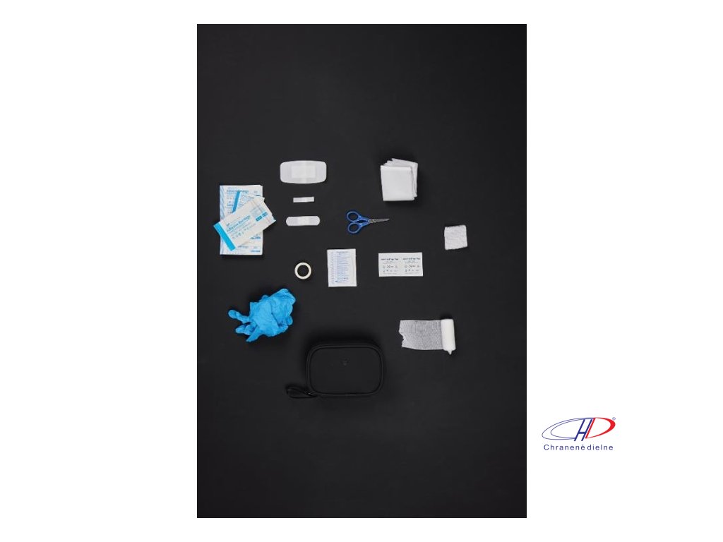 Kompaktný dizajn s pútkom na prenášanie. Obsahuje náplaste, nožnice, obväzy, gázové štvorce, obklady, obrúsky na rany, pásku a jednorazové rukavice. Vybavená odolným zipsom SAB. Certifikované podľa RCS. Obsahuje 23 % RCS-certifikovaného RPET.Dodatočné parametre