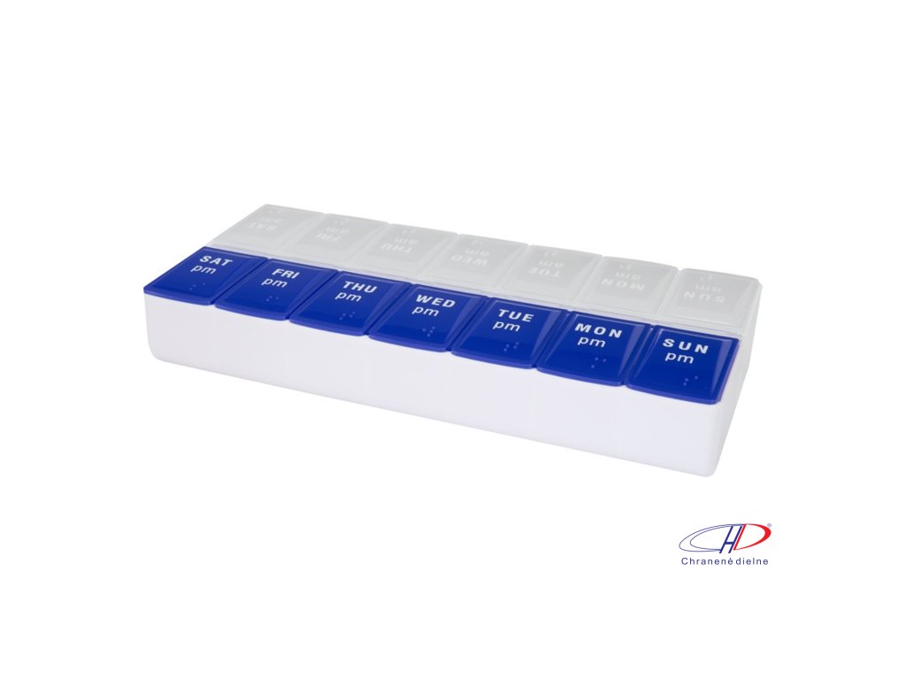 Krabička na lieky obsahuje oddelené priehradky na ranné aj popoludňajšie dávky, od pondelka do nedele, aby ste nikdy nevynechali dávku.Dodatočné parametre