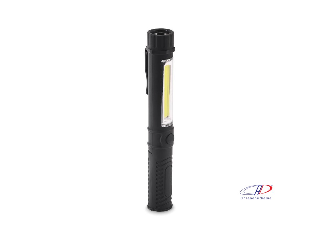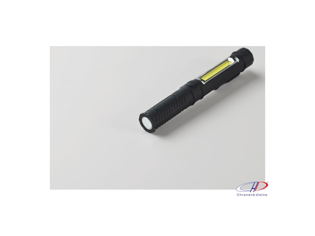 Magnetická LED pracovná baterka z ABS materiálu s klipom a bočným COB svetlom. Má magnetickú základňu pre používanie bez použitia rúk. Vyžaduje 3 batérie AAA (nie sú súčasťou balenia).Dodatočné parametre