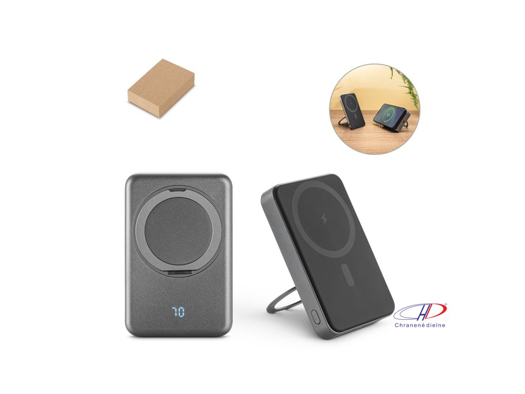 Magnetická powerbanka 10 000 mAh s tenkým dizajnom a super rýchlym bezdrôtovým nabíjaním 15W, podporný krúžok (rotácia o 360 stupňov). Vstup/výstup: 2 x USB-C (PD 20 W). Vrátane kábla. Krabička z recyklovaného kraftového papiera.Dodatočné parametre