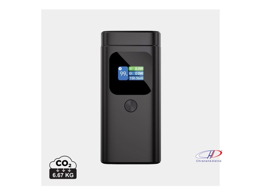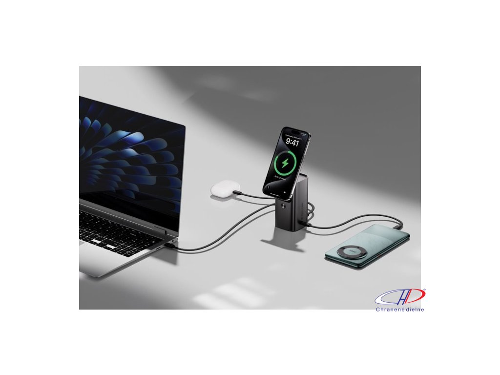 Powerbanka 15000 mAh s podporou ultra-rýchleho nabíjania 100W, ideálna pre laptopy. Vysokokvalitný farebný TFT displej, integrovaný 15W magnetický stojan na mobil. Nabíja 4 zariadenia súčasne: dva cez USB-C, jedno cez USB-A a jedno bezdrôtovo. PVC free.Dodatočné parametre