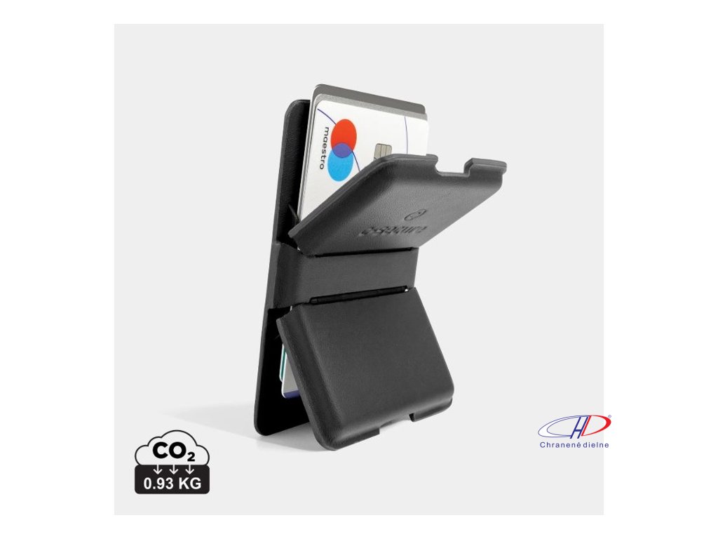 Vďaka integrovanej RFID ochrane chráni až 4 platobné karty, silné zabudované magnety zaisťujú pevné prichytenie k iPhonu – v prípade použitia puzdra kompatibilného s MagSafe, ale i bez neho. Je vyrobená z kvalitnej PU kože. Peňaženka slúži aj ako stojan.Dodatočné parametre