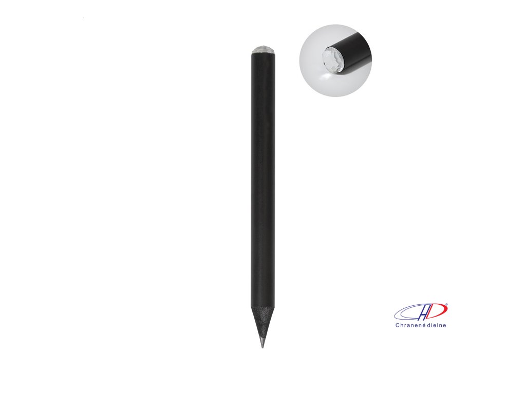 Čierna mini drevená ceruzka s akrylovými ozdobnými kamienkami. Orezaná, trieda HB.