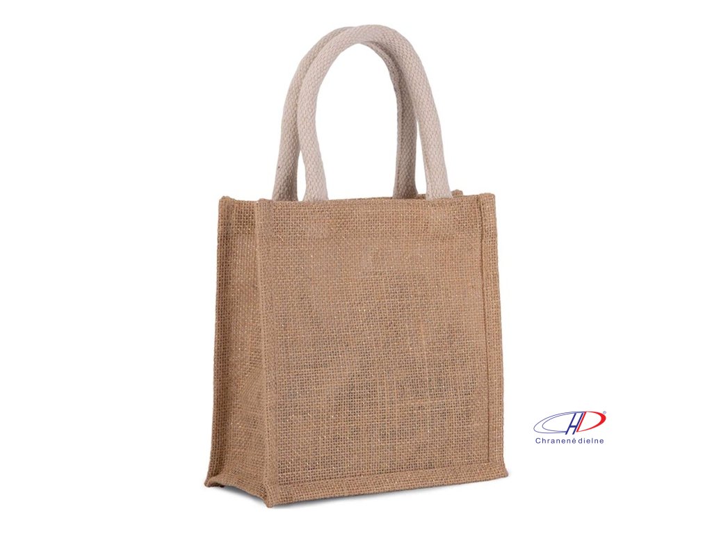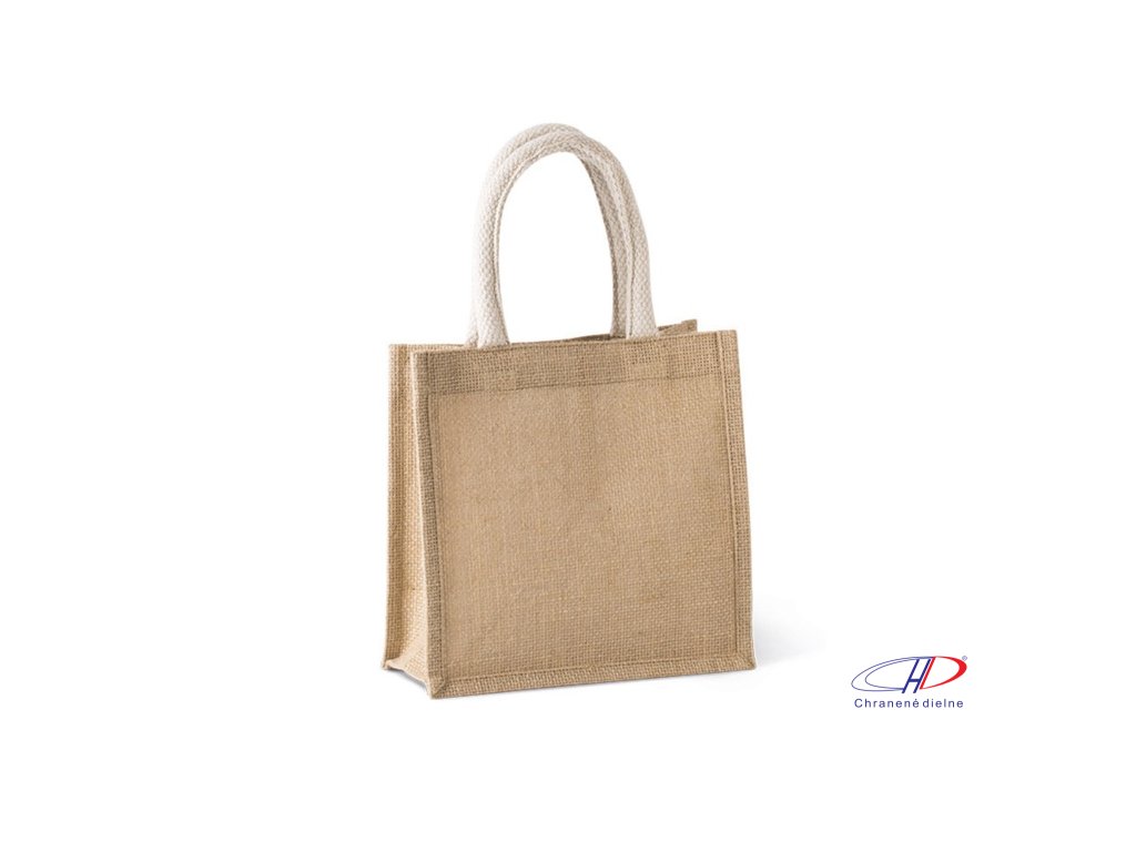 Jutová plátenná taška s bavlnenými ušami. Dostupné aj v strednej a veľkej veľkosti. Farba natural: Certifikát STANDARD 100 podľa OEKO-TEX® č. CQ 1164/1, IFTHDodatočné parametre