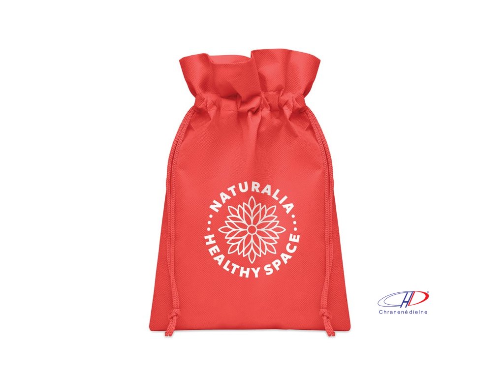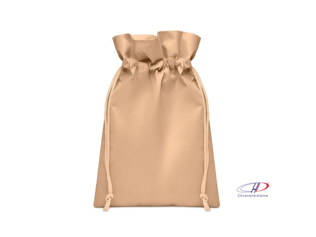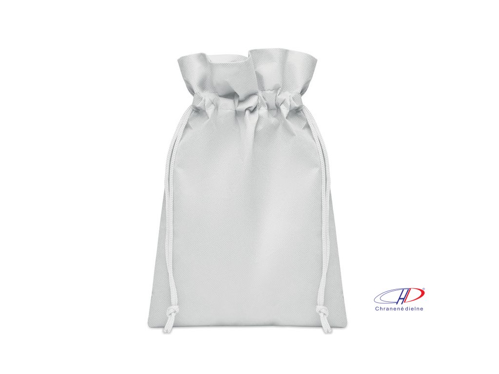 Malé darčekové vrecko so sťahovacou šnúrkou z netkanej RPET tkaniny. Rozmery cca 20x30 cm.Dodatočné parametre