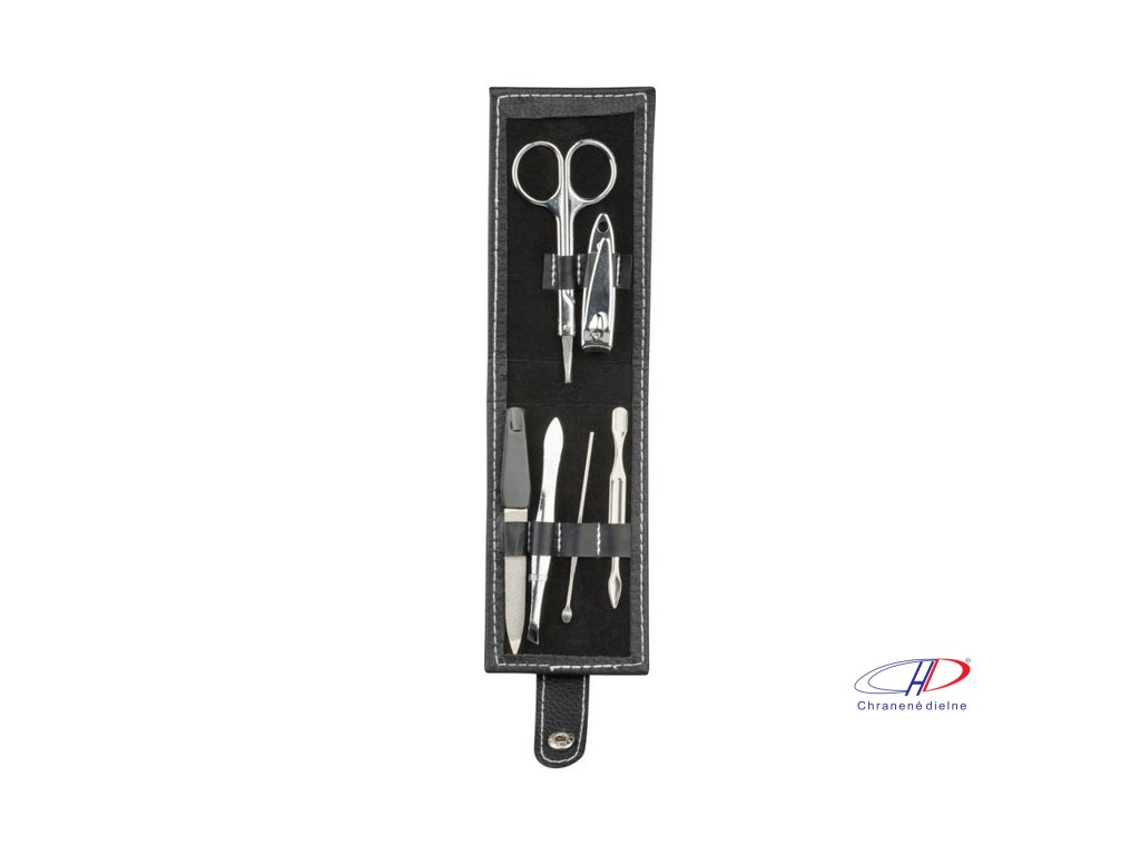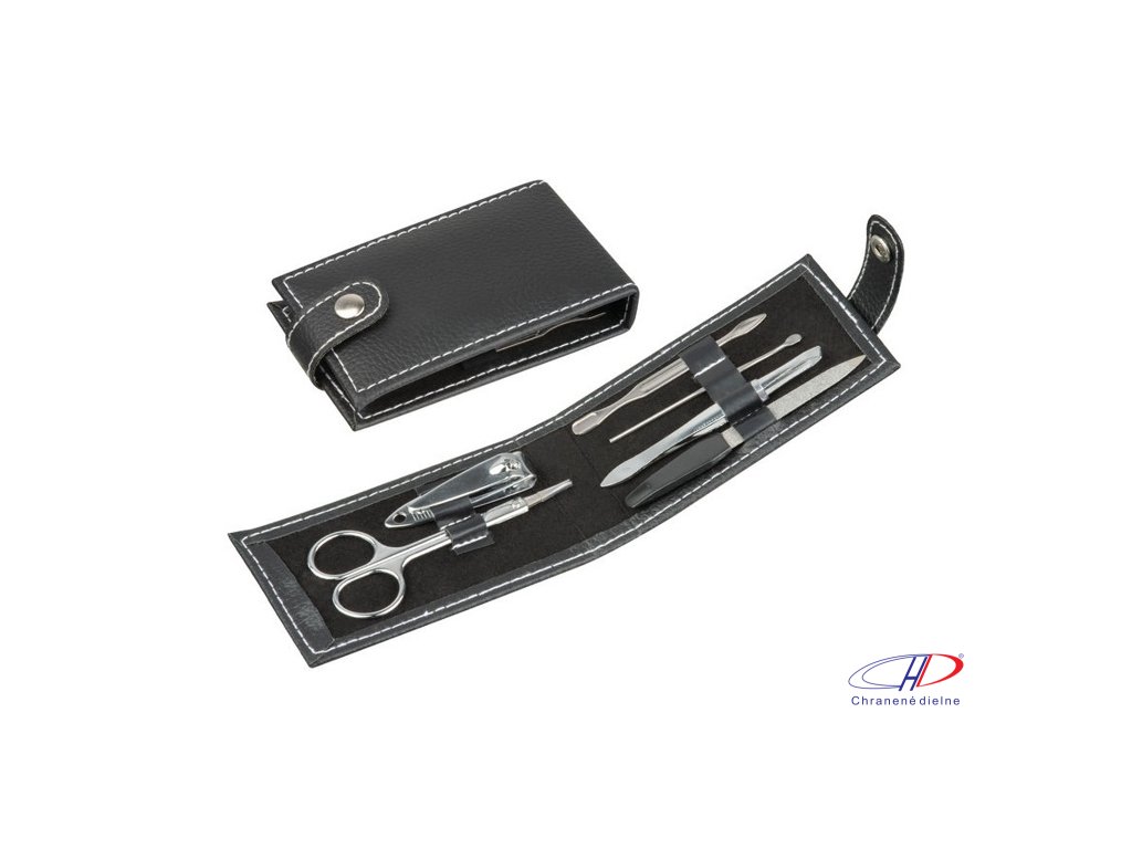 Kvalitná manikúrová sada v koženom puzdre s nástrojmi z nehrdzavejúcej ocele a diamantovým pilníkom na nechty, 7 dielna.Dodatočné parametre