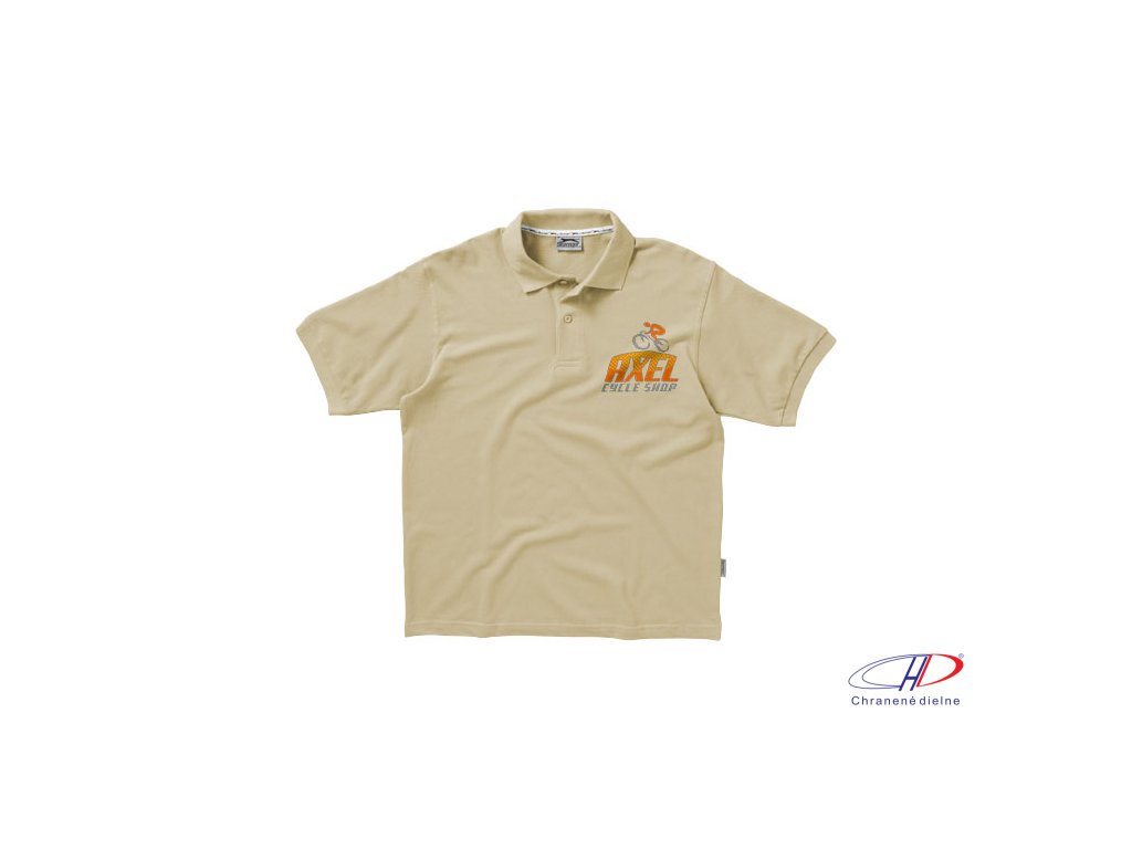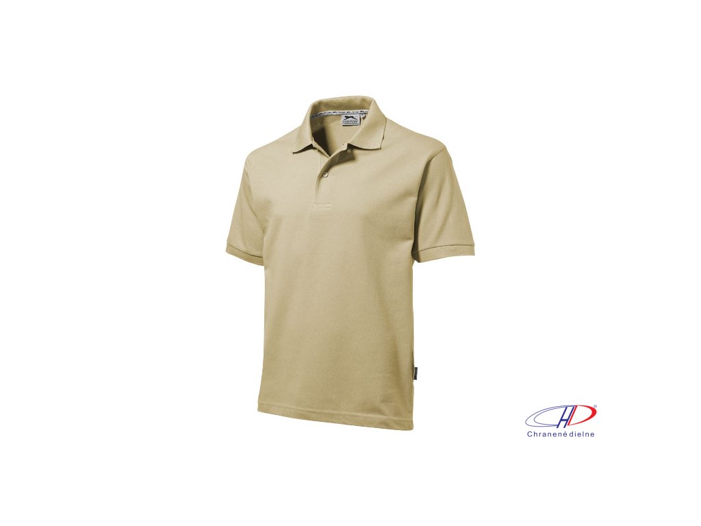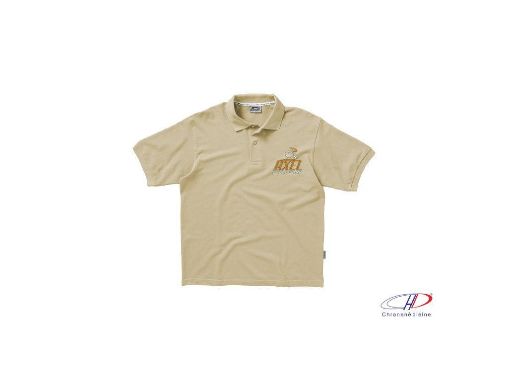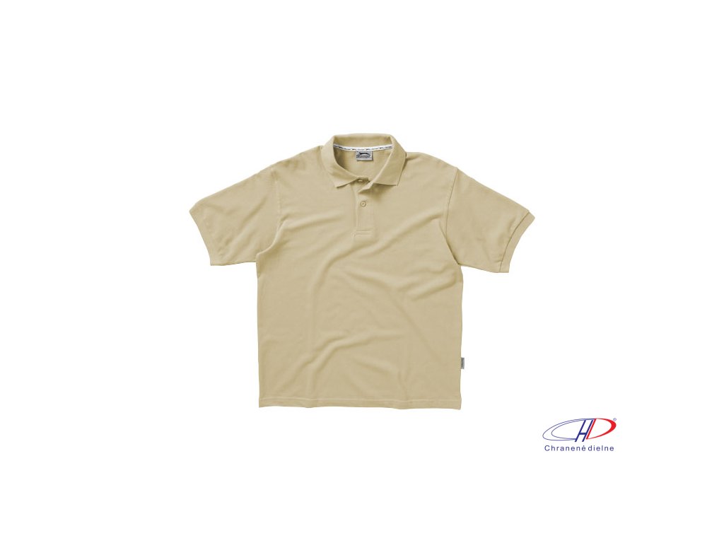 Plochý rebrový golierik, rebrované manžety, vnútorný lem golieru s logom Slazenger, zapínanie na dva gombíky.