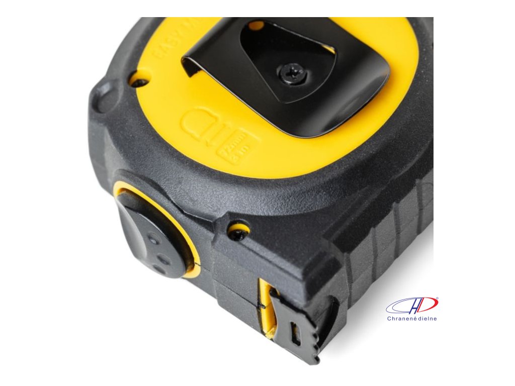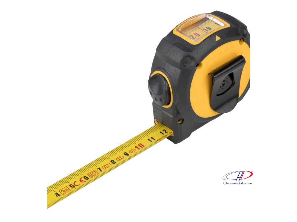 Meračské pásmo z ABS a TPR s 3 m dlhou a 16 mm širokou obojstrannou kovovou páskou. Priehľadné horné okienko. Vrátane funkcie uzamknutia/uvoľnenia, spony na zadnej strane a polyesterového remienka na zápästie. Balené v hnedej kartónovej krabici.Dodatočné parametre