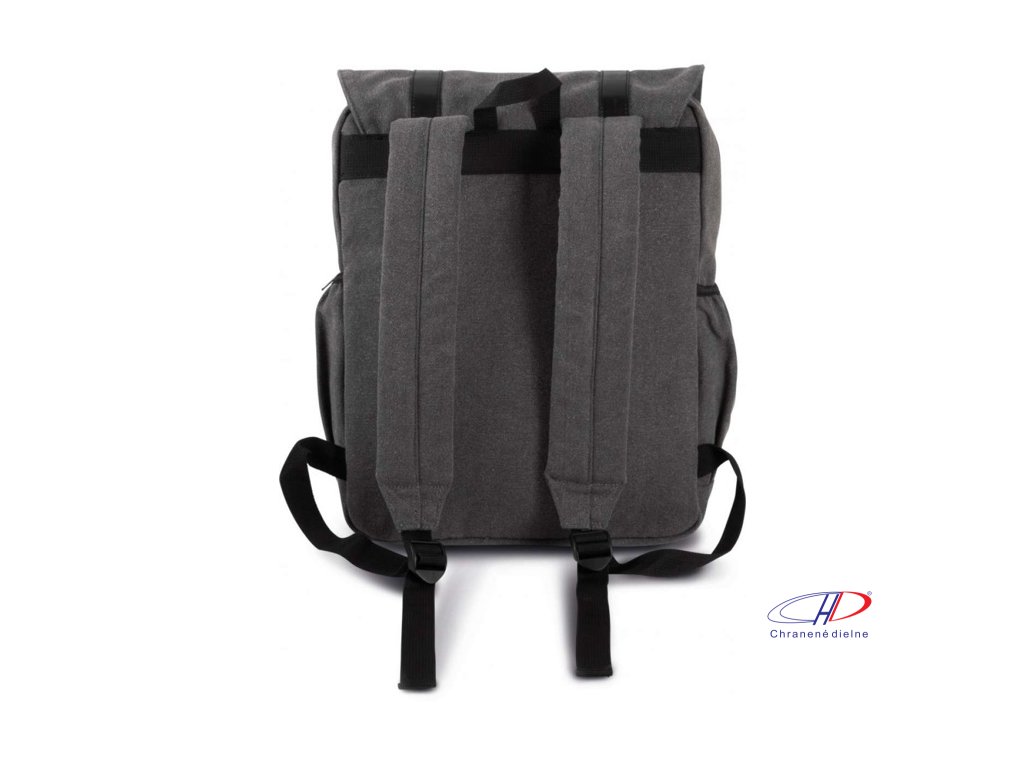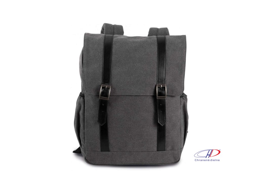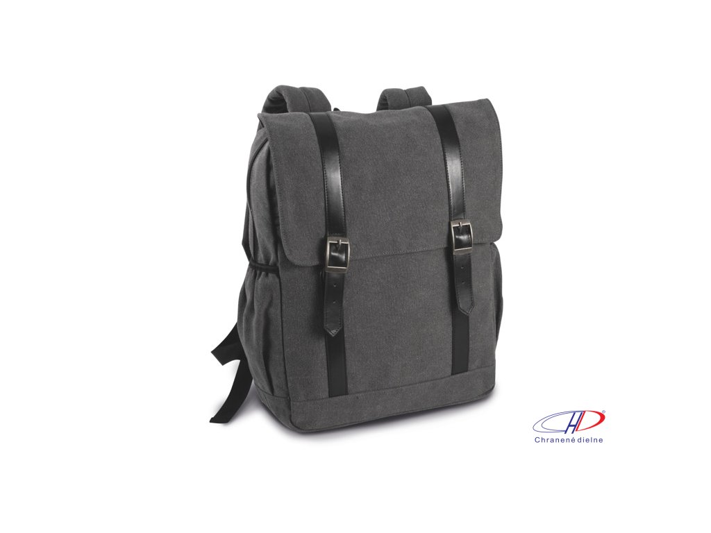 Bavlnený plátenný batoh s vrchnou chlopňou. Kontrastné popruhy so zapínaním na cvoky ukryté pod ozdobnými kovovými prackami. Vnútorná polstrovaná priehradka na zips na 13-palcové notebooky. Polstrované ergonomické ramenné popruhy a chrbát.Dodatočné parametre