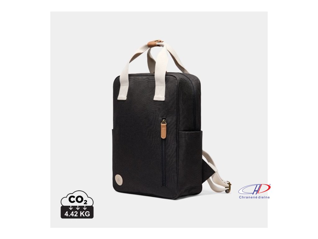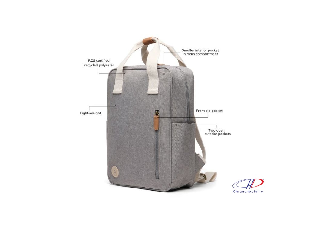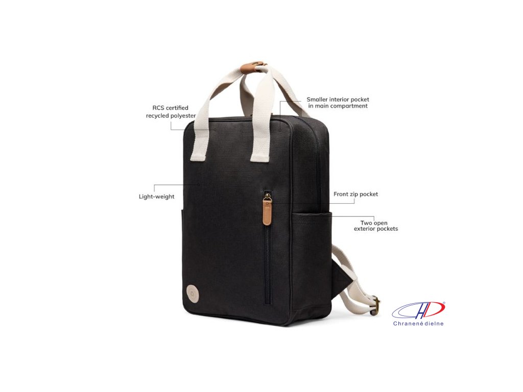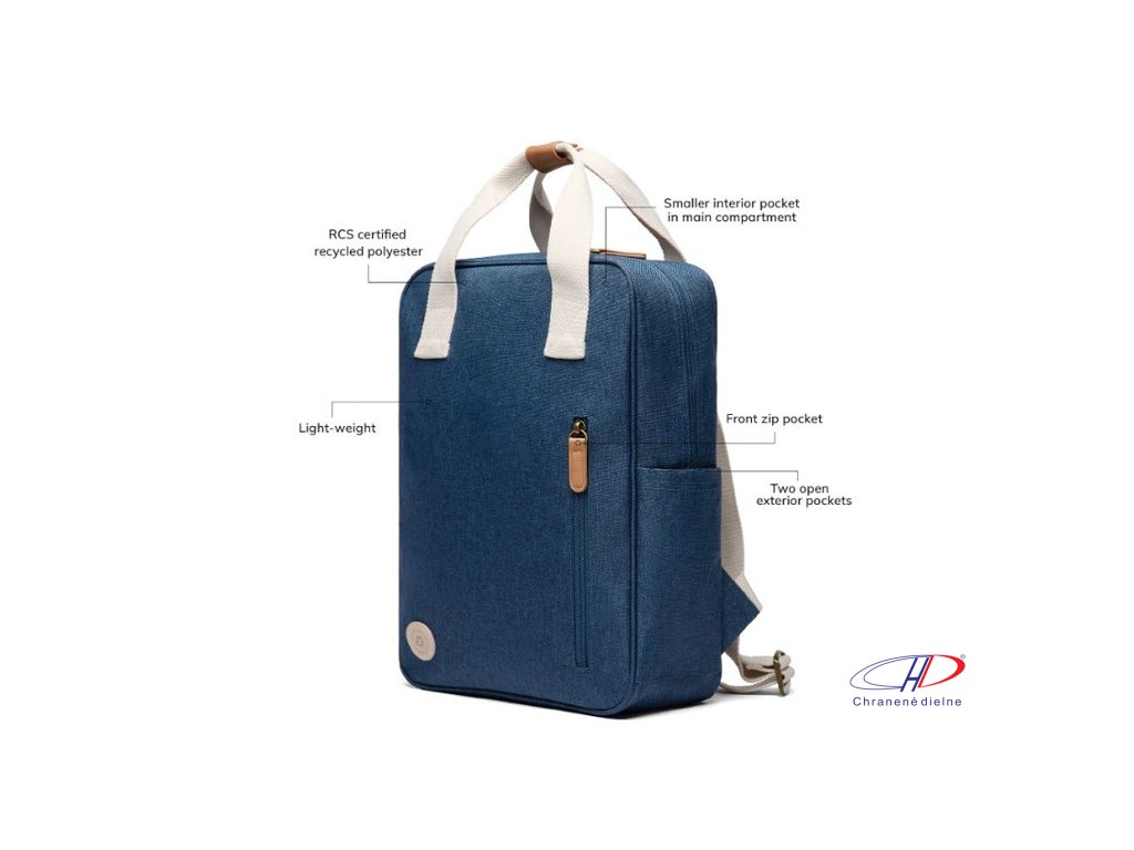 Batoh ponúka praktické predné vrecko na zips a dve otvorené bočné vrecká. Vo vnútri priestranného hlavného priestoru sa nachádza menšie vrecko, ktoré je navrhnuté pre jednoduchú organizáciu. Kovové detaily v starožitnej mosadzi. Podiel recyklátu: 10 %Dodatočné parametre