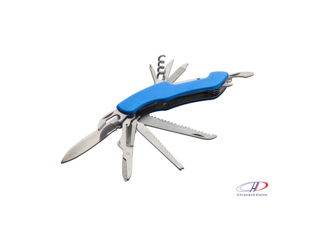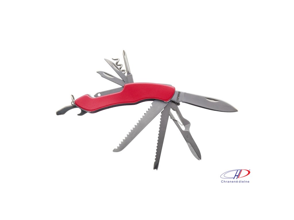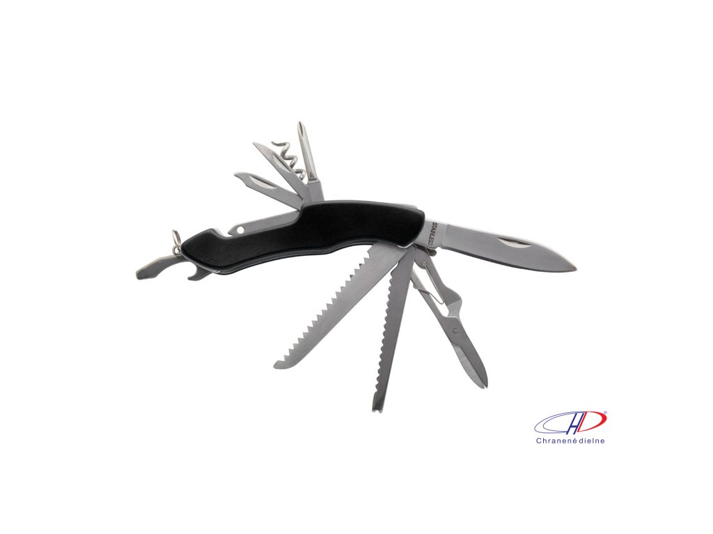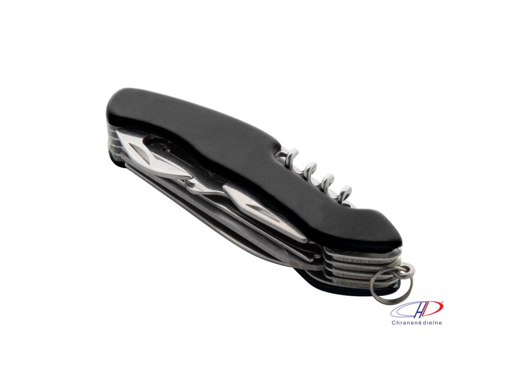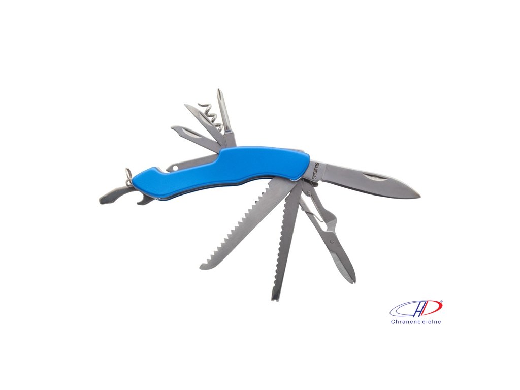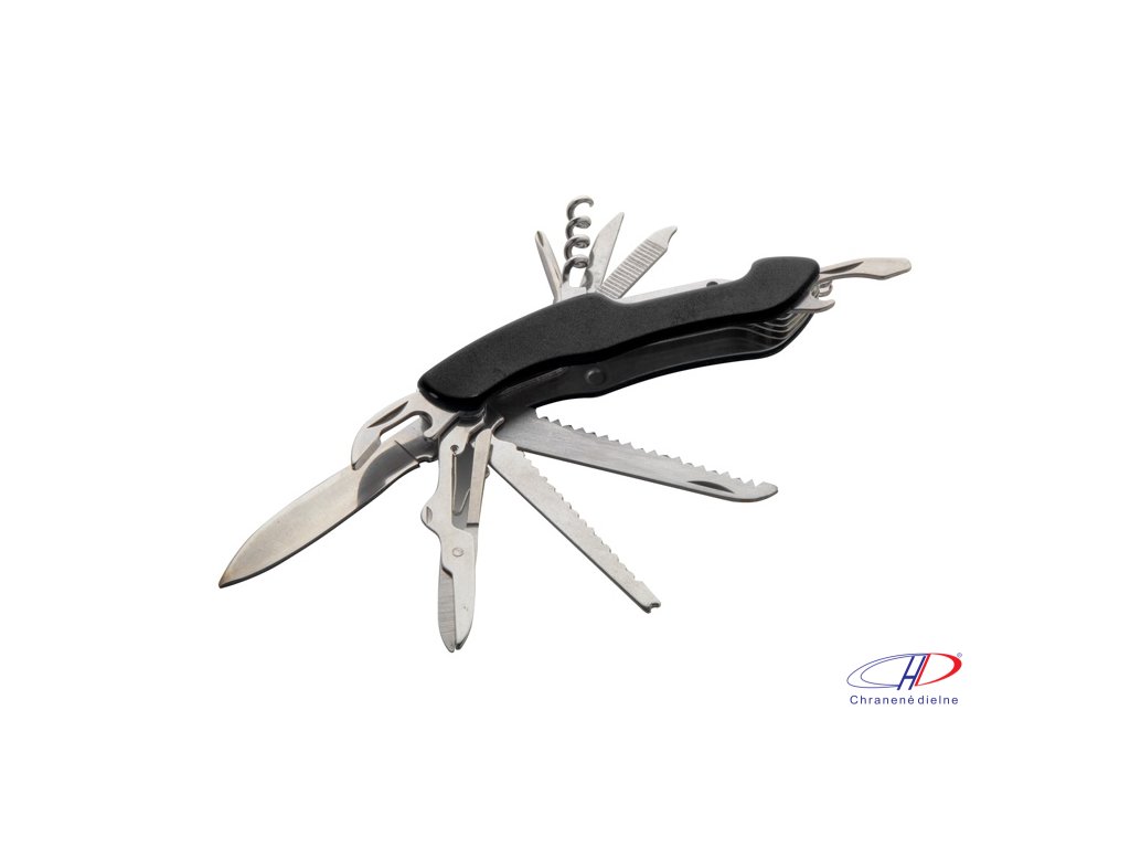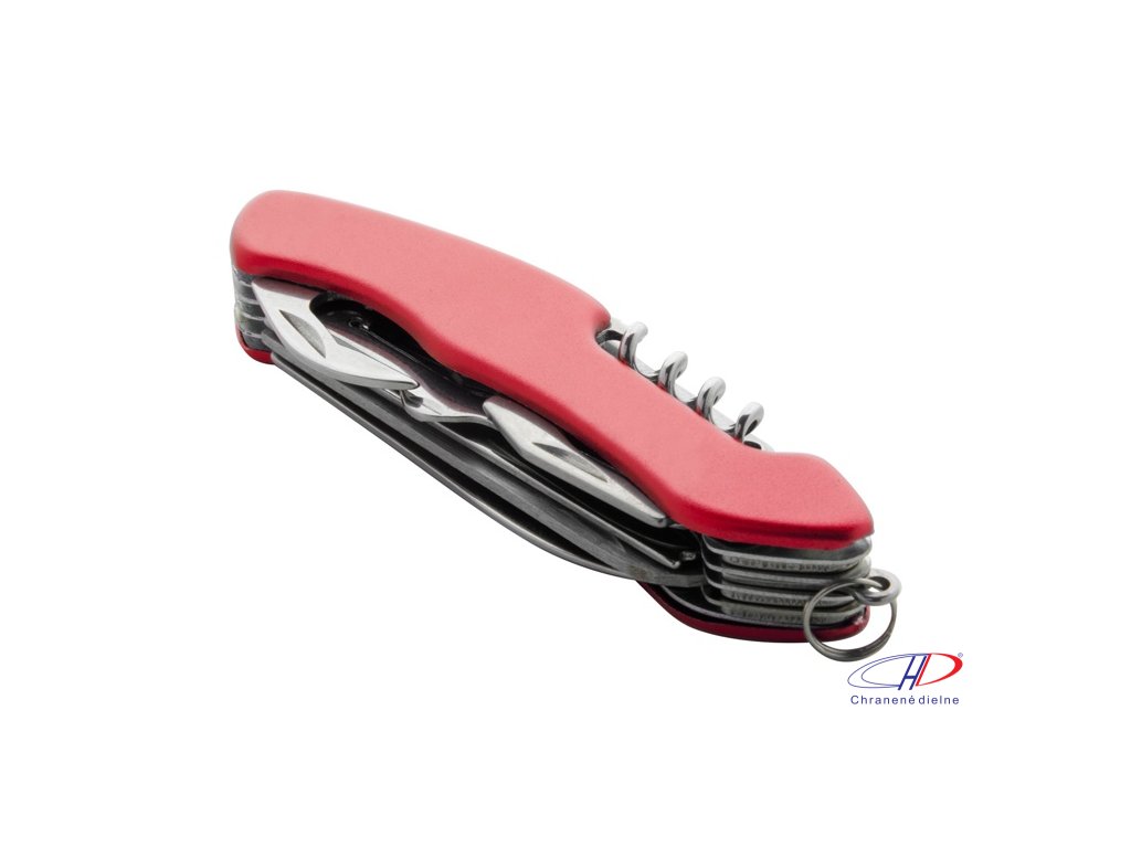 Vreckový nôž z nerezovej ocele s 12 funkciami a hliníkovou rukoväťou.Dodatočné parametre